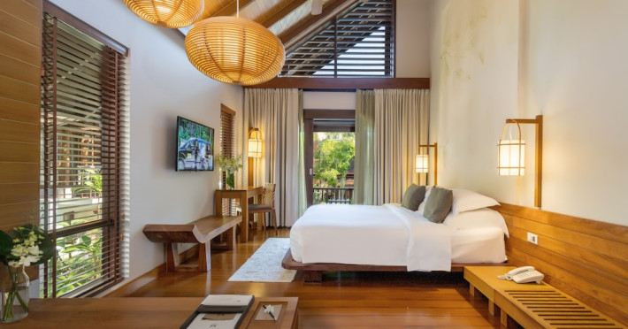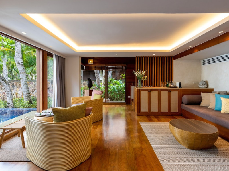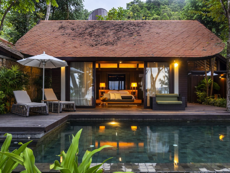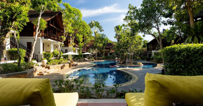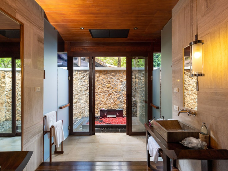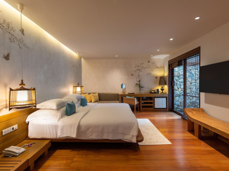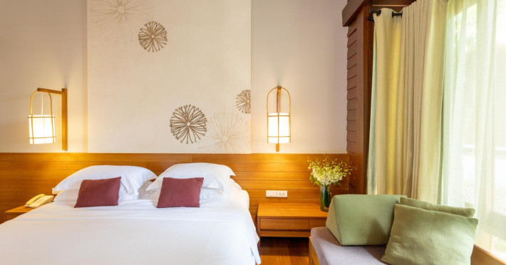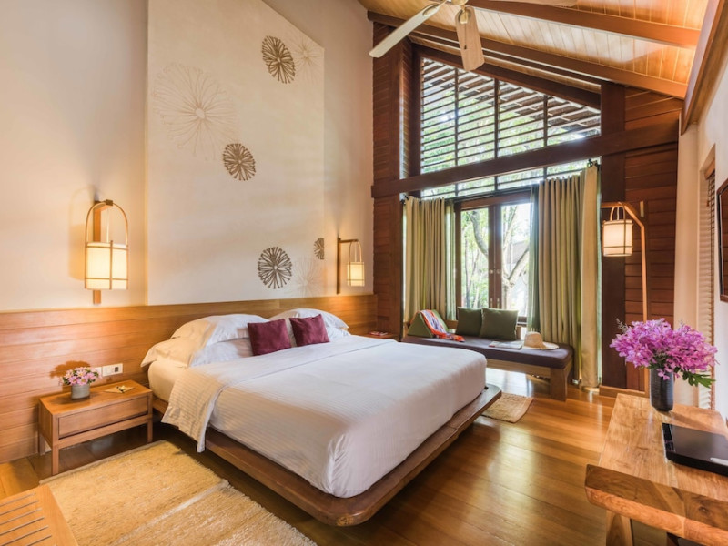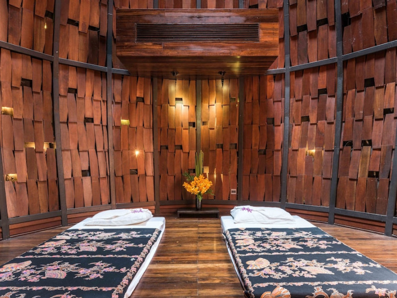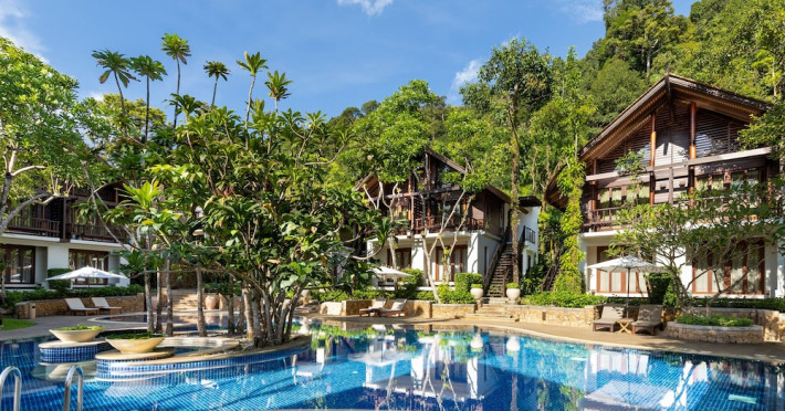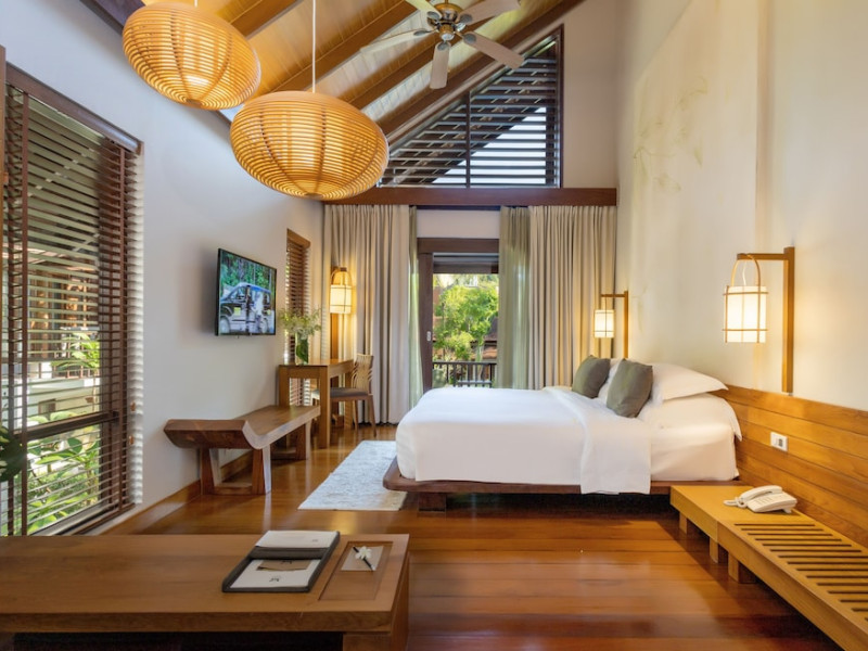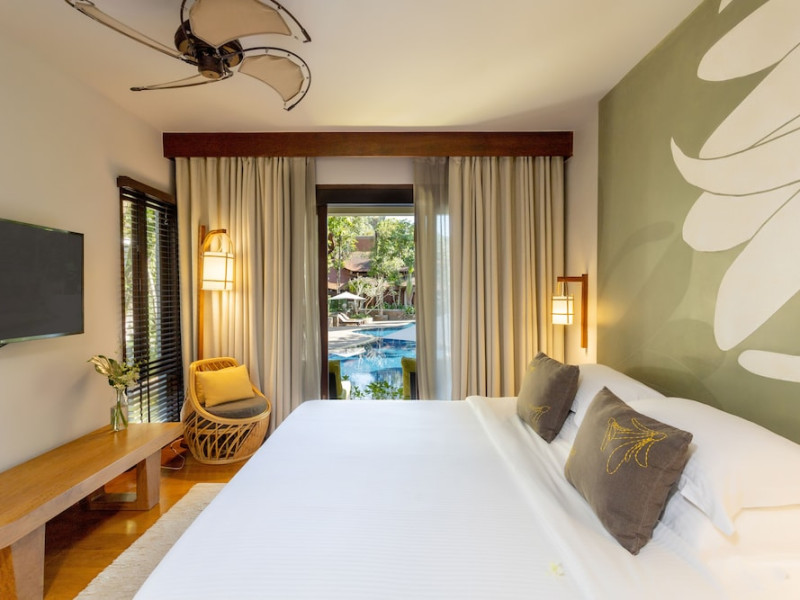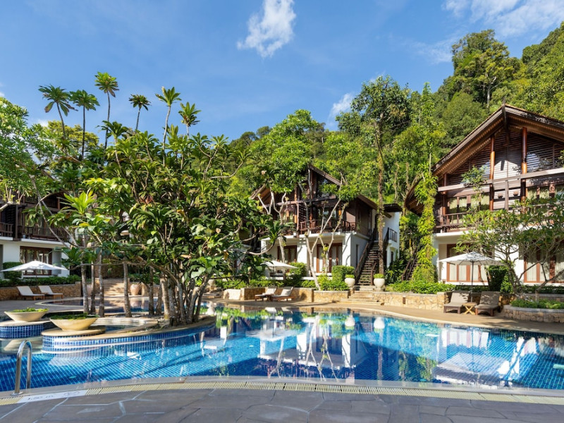 The Tubkaak Krabi Boutique Resort is located on Tubkaak Beach, offering beachfront accommodations amidst lush tropical gardens. Ideal for a relaxing getaway, the resort features spacious, air-conditioned rooms decorated with Thai-inspired décor. Rooms include complimentary wireless internet access, a 40-inch LED television with satellite programming, a private bathroom with separate bathtub and shower, a refrigerator, minibar, safe, and coffee/tea maker. Select rooms offer a balcony or terrace. Guests can enjoy Thai and European cuisine at The Arundina restaurant, relax with drinks at the bar, and take advantage of room service. The resort boasts an outdoor pool, a spa offering massages and body treatments, a sauna, and a fitness center. Additional amenities include complimentary wireless internet access, concierge services, a tour desk, luggage storage, laundry service, and complimentary parking. Airport transportation is available for a surcharge. A complimentary buffet breakfast is served daily. The Tubkaak Krabi Boutique Resort is a Tourist hotel. Located in Beach - Tubkaak Beach area. The nightlife/restaurants are easily accessible by taxi or bus from the hotel.