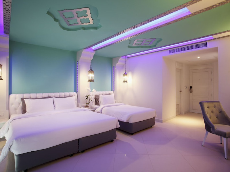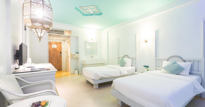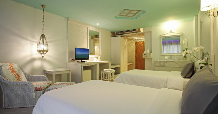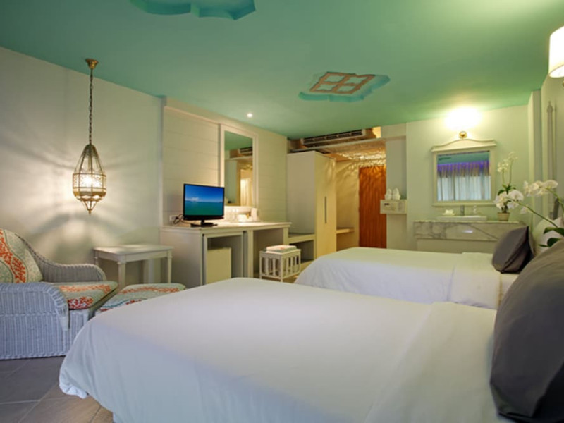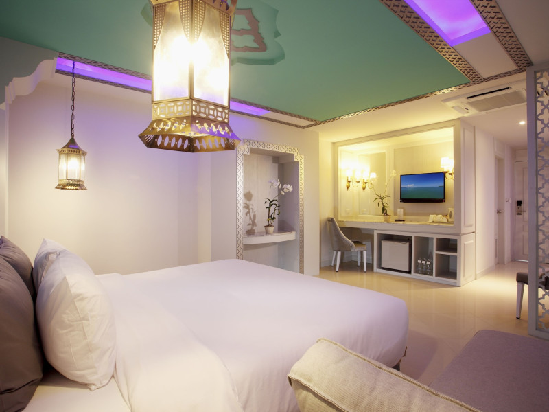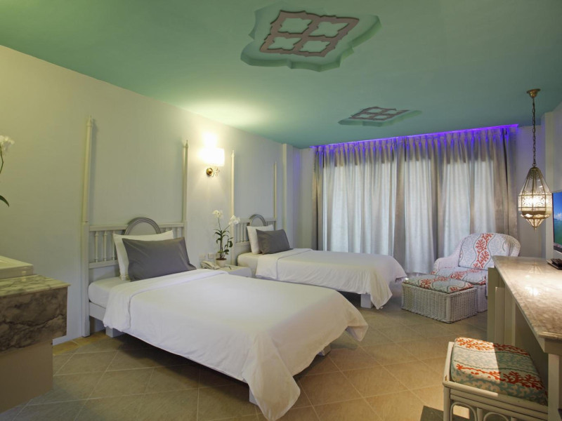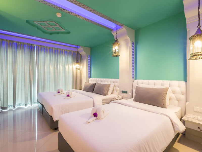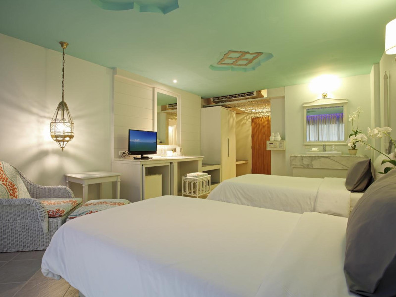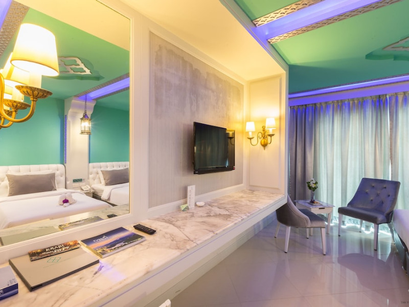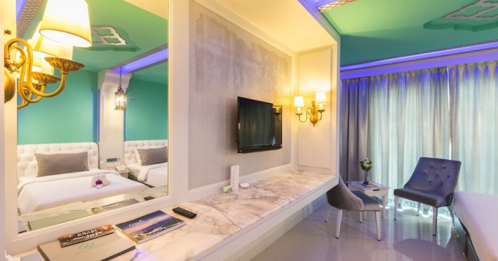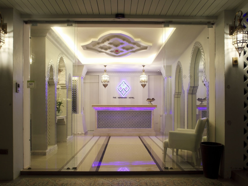Located in Krabi, The Verandah - SHA Extra Plus is a 3-star hotel inspired by Moroccan themes, situated 200 metres from Ao Nang Beach. Established in 2003, it offers air-conditioned rooms with cable TV and private balconies. Guests have secure key card access to the lift and rooms. Private bathrooms include shower facilities and complimentary toiletries. The hotel features a restaurant, snack bar/deli, and a cafe bar serving American breakfast and drinks. Amenities include complimentary wireless internet access, a computer station, a 24-hour front desk, concierge service, luggage storage, safety deposit boxes, tour/ticket assistance, dry cleaning/laundry services, and free self-parking. Airport shuttle service is available for a surcharge. Guests can enjoy the fitness center, spa with massages, sauna, and an outdoor pool. The hotel is a non-smoking property, with designated smoking areas. The Verandah Hotel is a Tourist hotel. The nightlife/restaurants are located in the hotel.