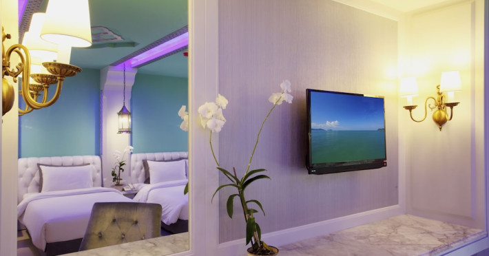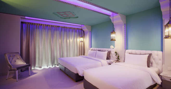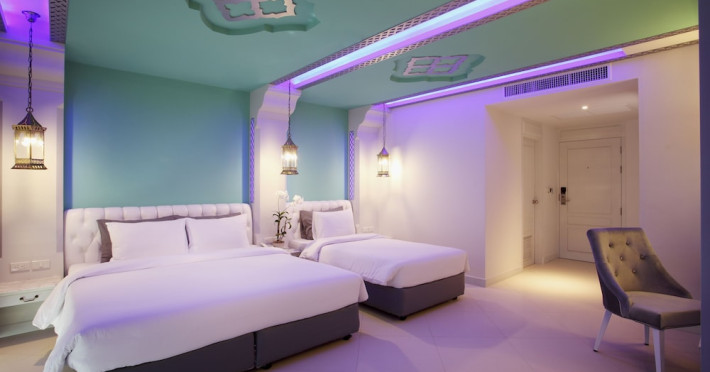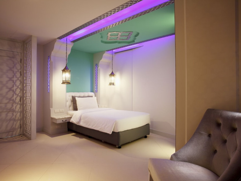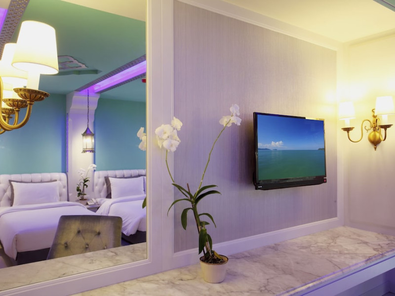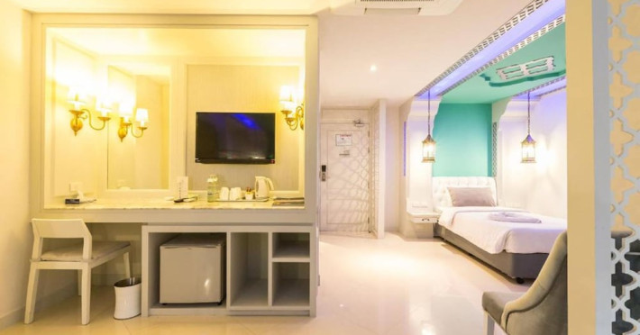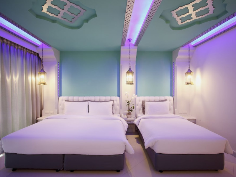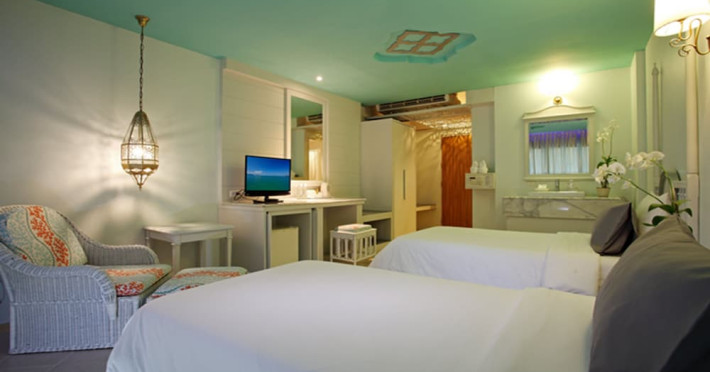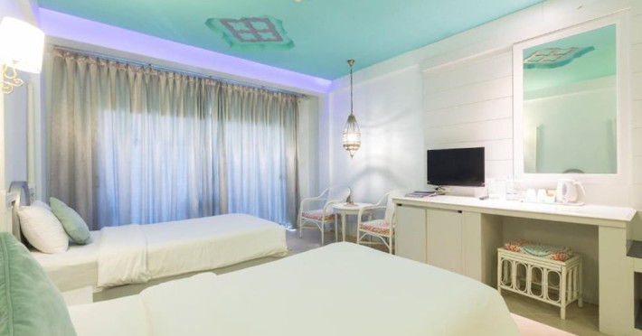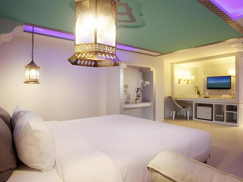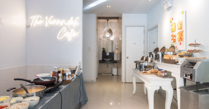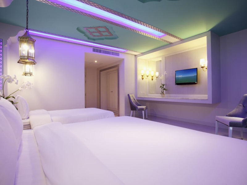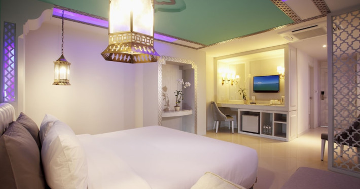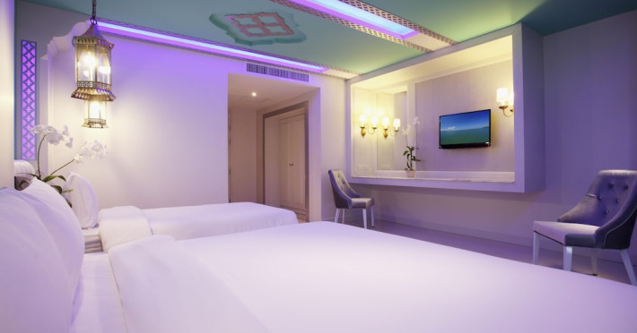 Located in Krabi, The Verandah - SHA Extra Plus is a 3-star hotel inspired by Moroccan themes, situated 200 metres from Ao Nang Beach. Established in 2003, it offers air-conditioned rooms with cable TV and private balconies. Guests have secure key card access to the lift and rooms. Private bathrooms include shower facilities and complimentary toiletries. The hotel features a restaurant, snack bar/deli, and a cafe bar serving American breakfast and drinks. Amenities include complimentary wireless internet access, a computer station, a 24-hour front desk, concierge service, luggage storage, safety deposit boxes, tour/ticket assistance, dry cleaning/laundry services, and free self-parking. Airport shuttle service is available for a surcharge. Guests can enjoy the fitness center, spa with massages, sauna, and an outdoor pool. The hotel is a non-smoking property, with designated smoking areas. The Verandah Hotel is a Tourist hotel. The nightlife/restaurants are located in the hotel.