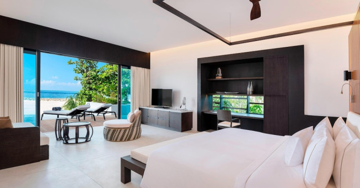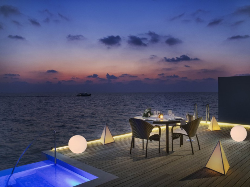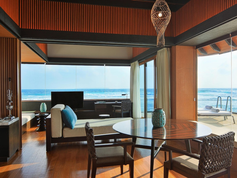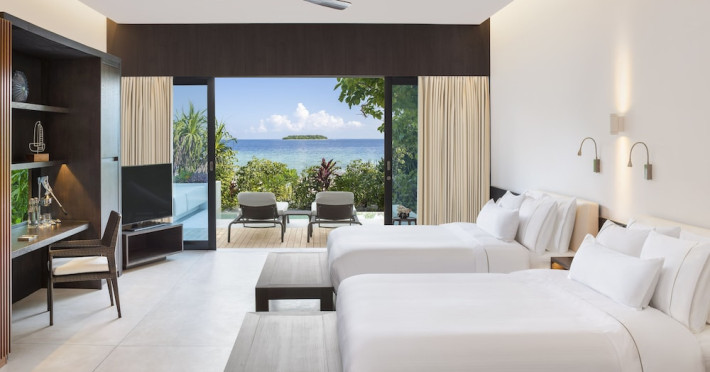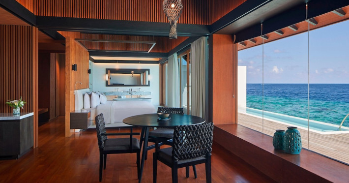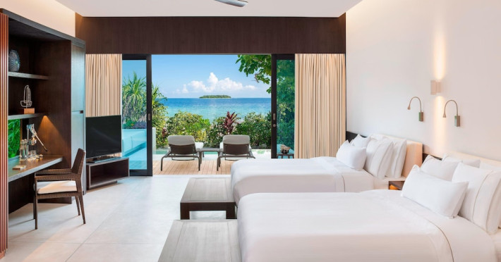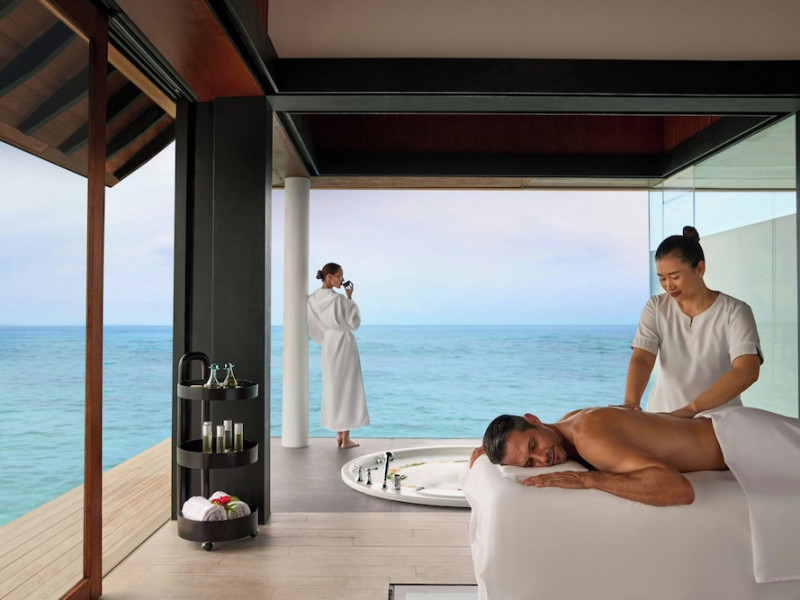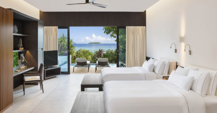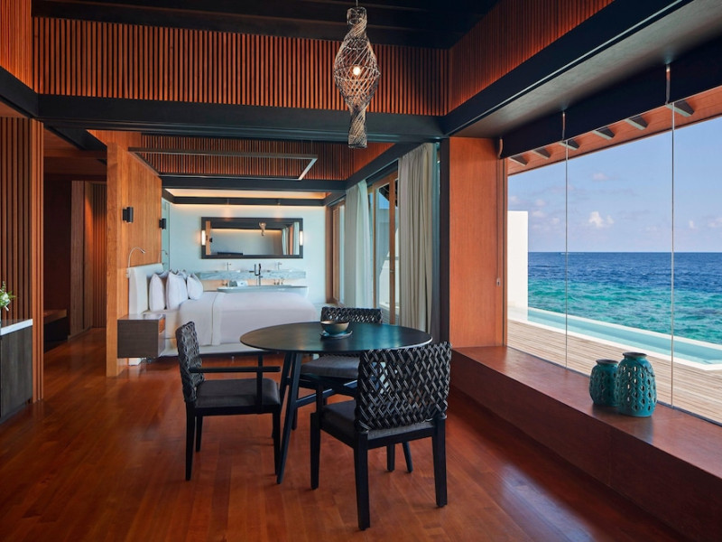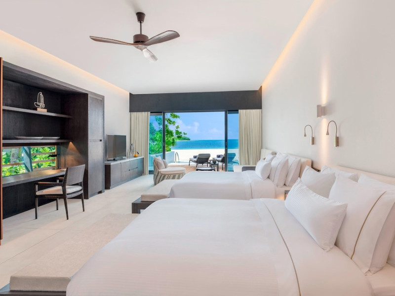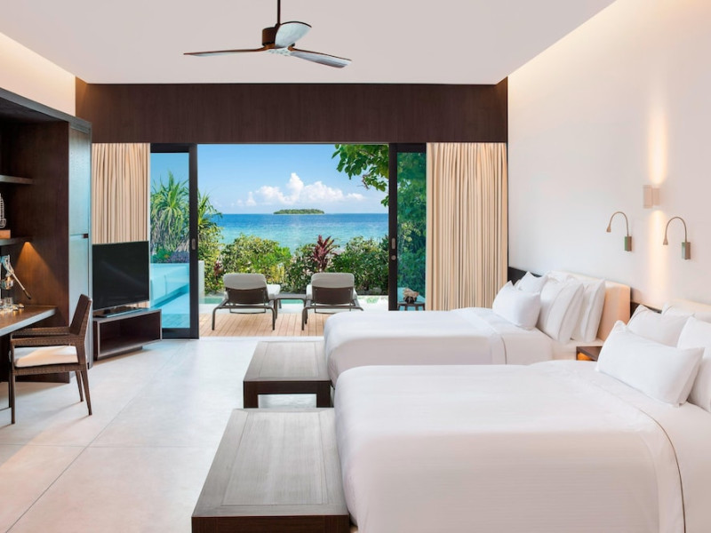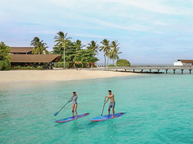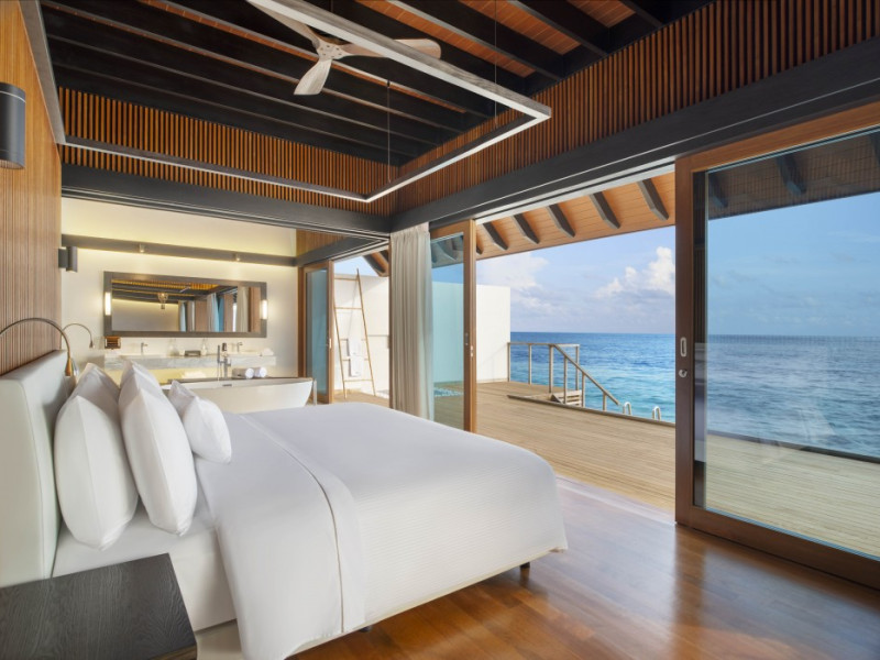 The Westin Maldives Miriandhoo Resort is a beachfront hotel in Miriandhoo Island, near Hanifaru Bay. It's 9.1 mi (14.6 km) from Hibalhidoo and 13.5 mi (21.7 km) from Kihaadhuffaru Island Beach. The resort offers 70 individually decorated guestrooms with refrigerators, LED televisions, pillowtop beds with premium bedding, and private bathrooms featuring separate bathtubs and showers with rainfall showerheads. Amenities include complimentary Wi-Fi, a 24-hour fitness center, an outdoor pool, an outdoor tennis court, a spa offering massages, body treatments, and facials, concierge services, gift shops, a 24-hour business center, express check-in/check-out, and 99 square meters of meeting/conference space. Three on-site restaurants offer international cuisine and 24-hour room service is available. A bar/lounge, beach bar, and poolside bar are also available. Buffet breakfast is available daily (fee applies). All-inclusive rates are available; however, charges may apply for some restaurants, special dinners, certain beverages, and other amenities. The Westin Maldives Miriandhoo Resort is a hotel.