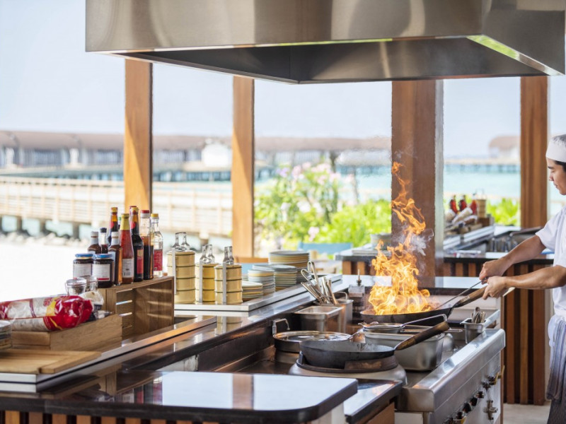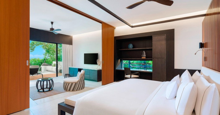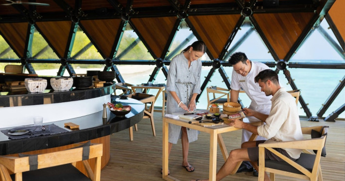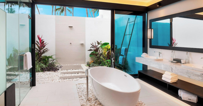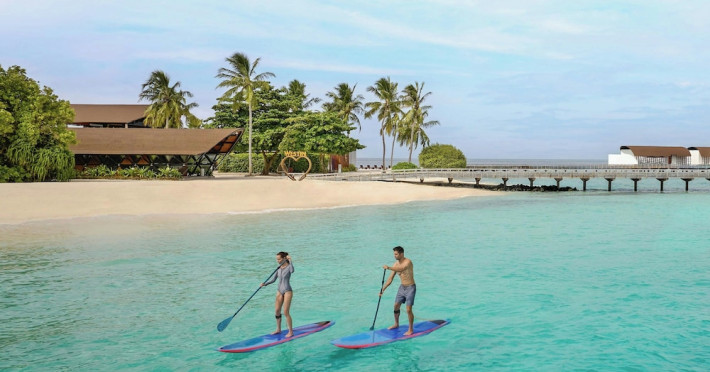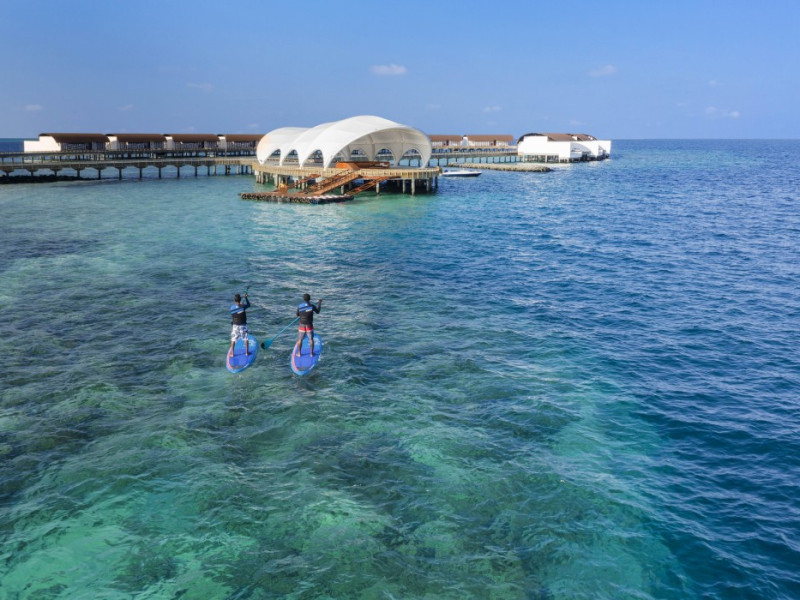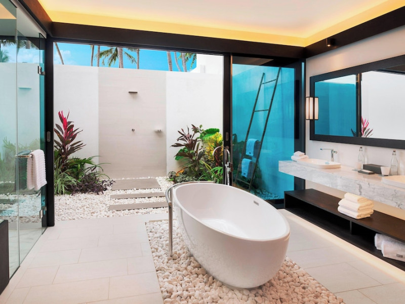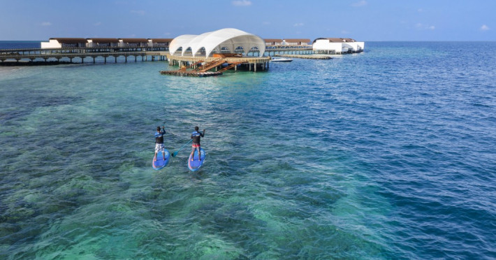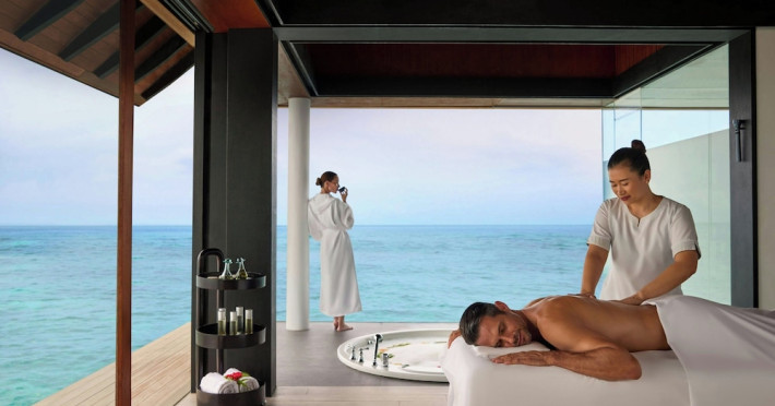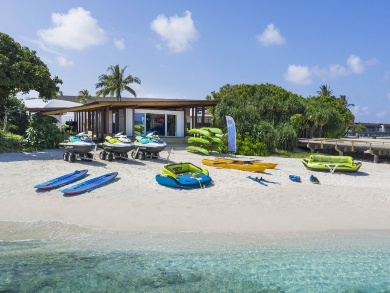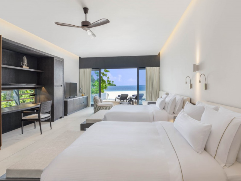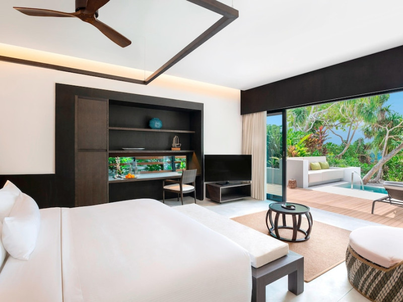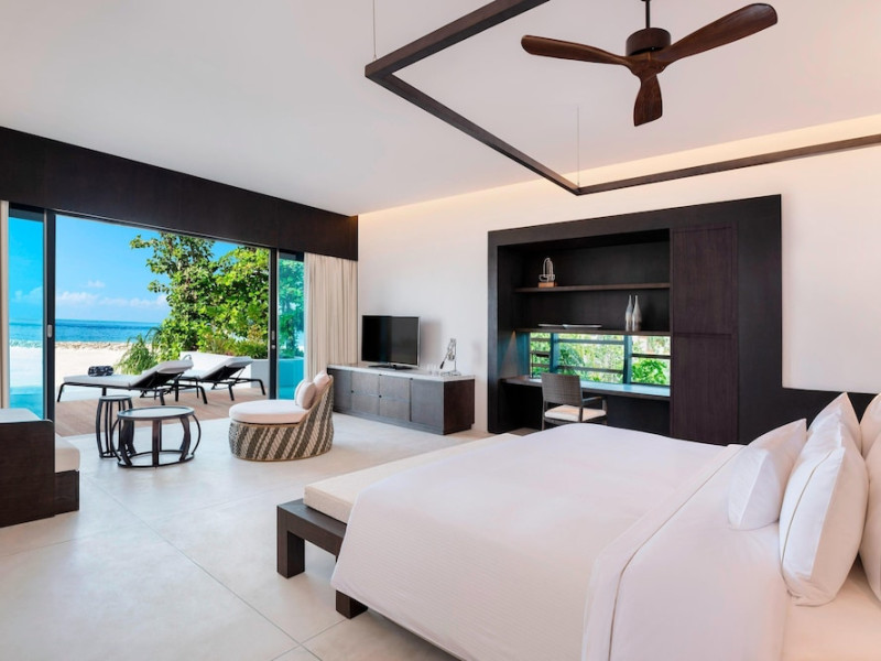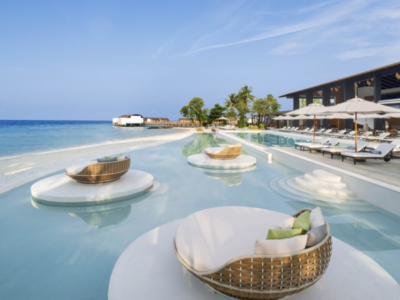 The Westin Maldives Miriandhoo Resort is a beachfront hotel in Miriandhoo Island, near Hanifaru Bay. It's 9.1 mi (14.6 km) from Hibalhidoo and 13.5 mi (21.7 km) from Kihaadhuffaru Island Beach. The resort offers 70 individually decorated guestrooms with refrigerators, LED televisions, pillowtop beds with premium bedding, and private bathrooms featuring separate bathtubs and showers with rainfall showerheads. Amenities include complimentary Wi-Fi, a 24-hour fitness center, an outdoor pool, an outdoor tennis court, a spa offering massages, body treatments, and facials, concierge services, gift shops, a 24-hour business center, express check-in/check-out, and 99 square meters of meeting/conference space. Three on-site restaurants offer international cuisine and 24-hour room service is available. A bar/lounge, beach bar, and poolside bar are also available. Buffet breakfast is available daily (fee applies). All-inclusive rates are available; however, charges may apply for some restaurants, special dinners, certain beverages, and other amenities. The Westin Maldives Miriandhoo Resort is a hotel.