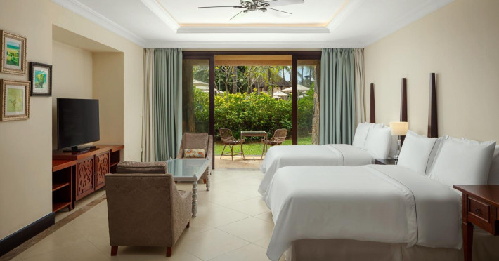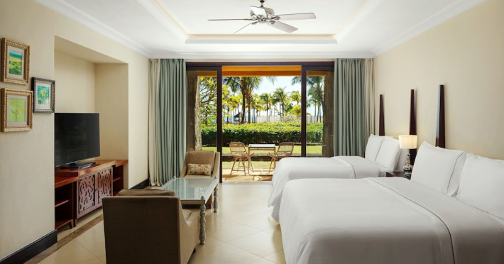 Located on the beach in Balaclava, The Westin Turtle Bay Resort & Spa, Mauritius offers luxurious accommodations with views of the Indian Ocean. Guests can relax at the full-service spa with massages, body treatments, and facials, and enjoy recreational amenities including two outdoor swimming pools, a health club, and an outdoor tennis court. Complimentary Wi-Fi, concierge services, and gift shops are available. The resort features five restaurants, a poolside bar, and two additional bars/lounges, with 24-hour room service. All-inclusive rates are available, covering meals and beverages at on-site dining establishments (charges may apply for select restaurants, special dinners, and certain beverages). The air-conditioned rooms feature a minibar, espresso maker, a balcony or patio, a flat-screen TV with satellite programming, and a private bathroom with designer toiletries. Featured amenities include limo/town car service, complimentary newspapers in the lobby, and dry cleaning/laundry services. The hotel has conference space and meeting rooms. A roundtrip airport shuttle is available for a surcharge, and free valet parking is available onsite. The resort is near Turtle Bay and a short drive from Turtle Bay Marine Park. The Westin Turtle Bay Resort and Spa Mauritius is a Beach Resort, Spa Resort, Tourist hotel. Located in Turtle Bay area. The nightlife/restaurants are located in the hotel.