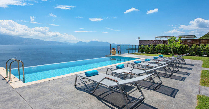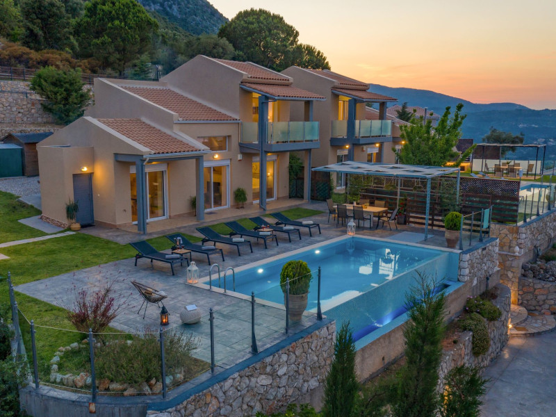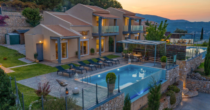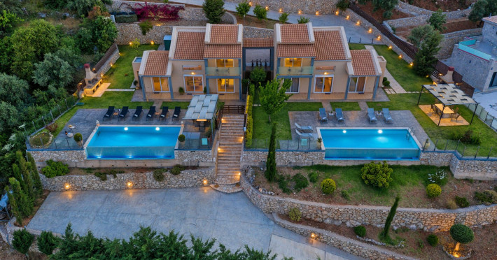 Ionian heaven property is a newly built complex of 2 luxury pool villas located in nikiana, one of the most picturesque places in lefkadas island. the 2 houses of 110 m^2each, abstain only 15 mins from the city of lefkada and 8 mins from nidry area. the villas in combination with the breathtaking infinity pool view of ionian waters ensure a one of a kind holiday experience for their elite guests.