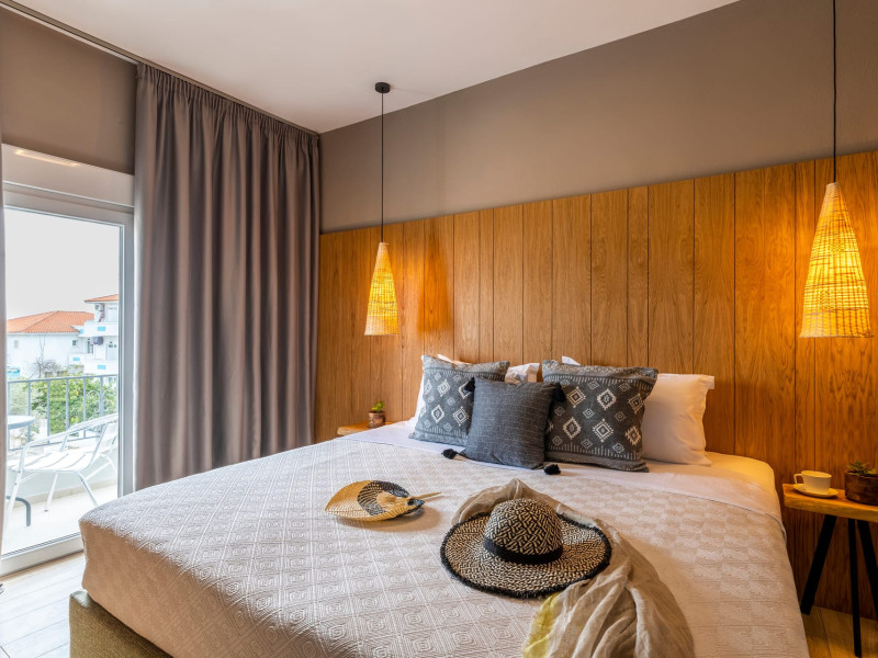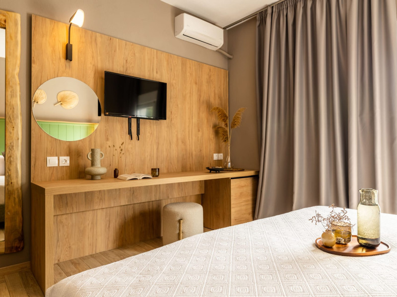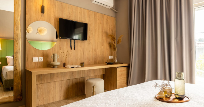 All rooms are fully renovated, bright and spacious. Also, the location is in a unique spot in the famous beach of Skiathos 'Μegali Ammos', only 50 meters! Skiathos Theros is located just 300 meters from the town of Skiathos and 1.5km from the airport. Make your reservation in Skiathos Theros in Skiathos Island and live unforgettable holidays!