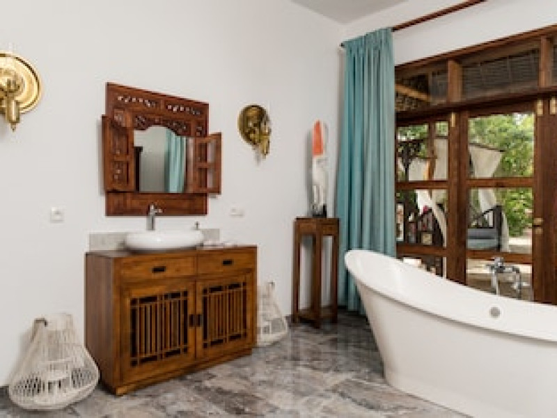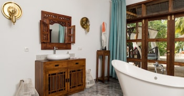 Toate vilele și camerele sunt decorate cu gust, cu artă africană și modernă și includ cu mobilier în stil colonial. Fiecare unitate oferă vedere splendidă la grădina tropicală, iar unele au vedere la mare. Vilele și camerele oferă aer condiționat, TV cu ecran plat și minibar. Unităţile de cazare au baie privată. Proprietatea oferă halate de baie și articole de toaletă.