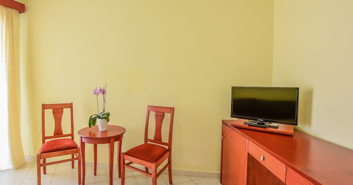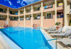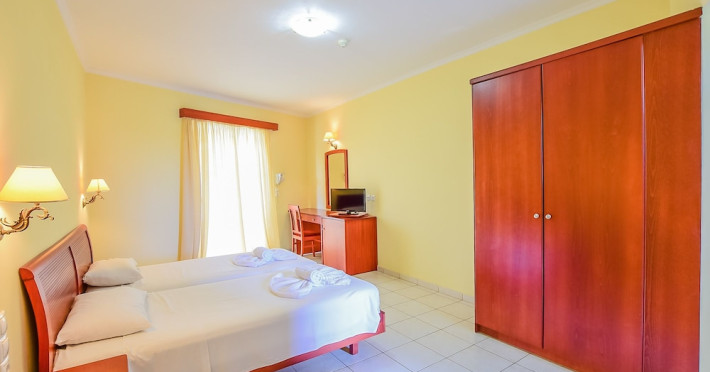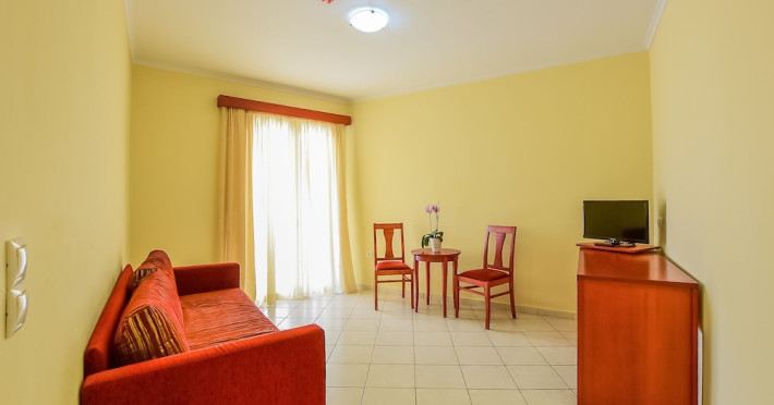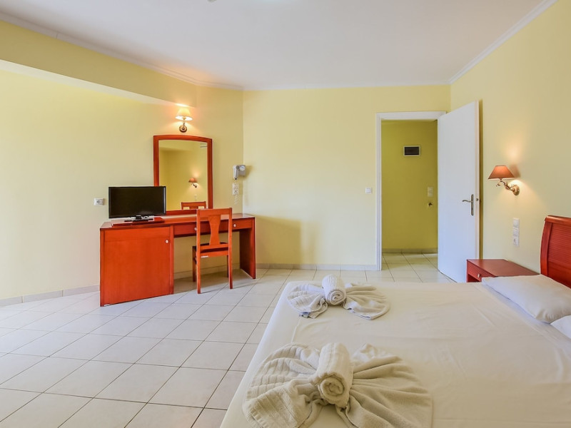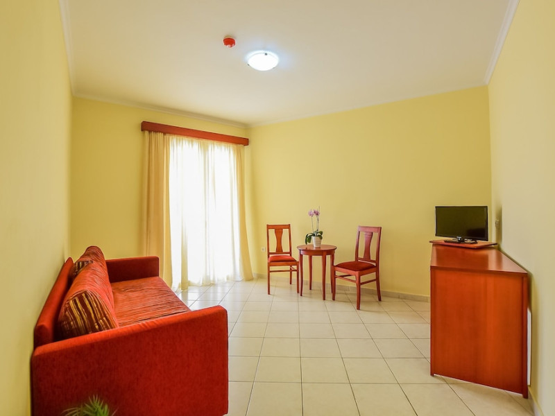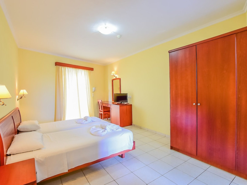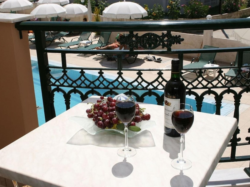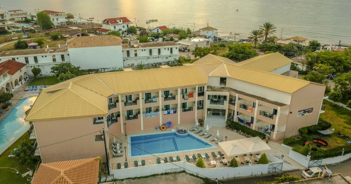 Facilities and services include bar, swimming pool, wireless Internet access at public areas, parking and 24 hour reception. Apartments feature kitchenette, fridge, kettle, TV, telephone, air conditioning (extra charge), safe (extra charge), bathroom and balcony / terrace. Please note that some of the above facilities may be closed due to weather / seasonal conditions.Address: Laganas, 29100 Zakynthos, Greece.