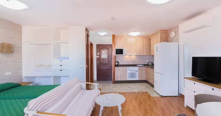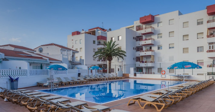 Apartamentos Tinerfe Garden, located in Costa Adeje, is within walking distance of the beach and near Playa de las Américas. The aparthotel features an outdoor pool, a restaurant, a snack bar, and a bar/lounge, as well as a terrace and garden. Guests can enjoy wireless internet access (surcharge). The apartments offer kitchens with a refrigerator and microwave, a balcony or patio, and satellite TV. Conveniences include phones and safes. The property provides a 24-hour front desk, luggage storage, laundry facilities, bicycle rental, and car hire. A paid airport shuttle service is available. Parking is offered for an extra charge. Nearby points of interest include La Pinta Beach, Torviscas Beach, Bobo Beach, Siam Park, and Puerto Colon Marina. Tenerife South Airport is the preferred airport. The Tinerfe Garden Apartments is a Tourist hotel. The nightlife/restaurants are located in the hotel.