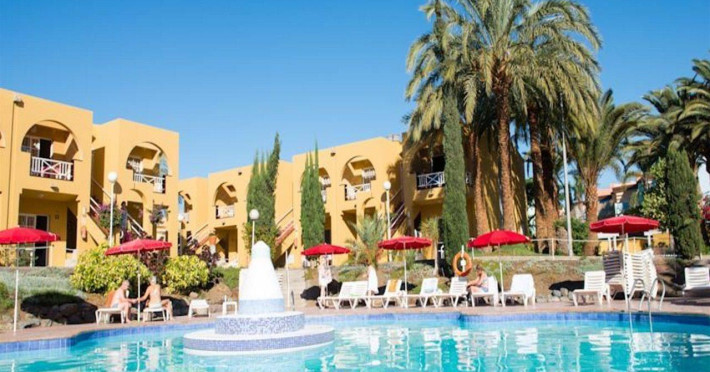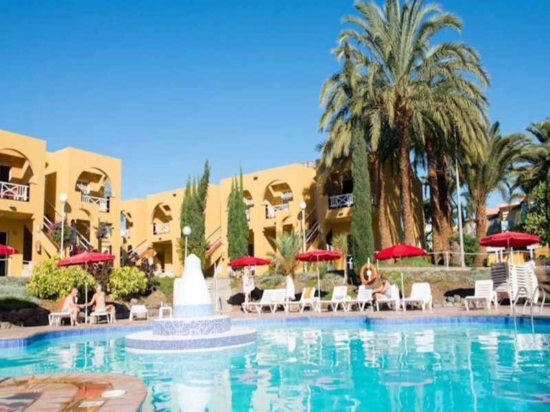 These apartments are situated in the famous area of Maspalomas in the south of Gran Canaria. Within the area guests will be able to find a variety of entertainment sites and local attractions. The market square is a few minutes' walk away and the nearest shopping centre is also quite close. The nearest sandy beach is around 3km away. This complex offers the ideal location for relaxing holidays.The outdoor complex provides a peaceful environment in which to relax. There are 2 large swimming pools for adults, one of them is heated in Winter and a children’s pool, there is also sun beds and shades available free of charge. Clients are also able to relax in the sauna (with cost) or play football, volleyball or basket ball on the multi use court- There is a billiard table near the pool-bar. It is just a short distance to the nearest 18-hole golf course and an array of further sporting activities. There is a laundry area in the central building.