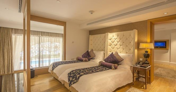 Restaurant principal Bosphorus - cu specialitati din bucataria internationala, restaurant rusesc Arbat, restaurant pe plaja, restaurant turcesc Besiktas, restaurant cu specific pescaresc Aquamarine, restaurant mediteranean La Cucina, restaurant thailandez Baan Thai, restaurant japonez Oishii, braserie, lobby lounge, baruri, crama, facilitati pentru organizarea banchetelor, magazine de lux, amfiteatru situat aproape de plaja, fantani arteziene si cascade, piscina exterioara de 16.000 mp, piscina amenajata ca o laguna, unde sunt organizate spectacole de lasere, lumini si apa, acvariu situat in centrul piscinei, bazin in care turistii pot inota alaturi de pesti, intr-un mediu controlat, recif (piscina de 900 mp, unde turistii pot inota si pot face scufundari), facilitati pentru copii (miniclub, programe de animatie, piscina cu tobogane), doua terenuri de tenis, volei pe plaja, tenis de masa, badminton, bowling, un teren de squash, terenuri de golf, facilitati pentru practicarea sporturilor, la 6 km de hotel (terenuri de fotbal, terenuri de tenis, baruri, centre fitness, sauna, sali de tratamente si masaje, centru sportiv acoperit, camera pentru presa & media).