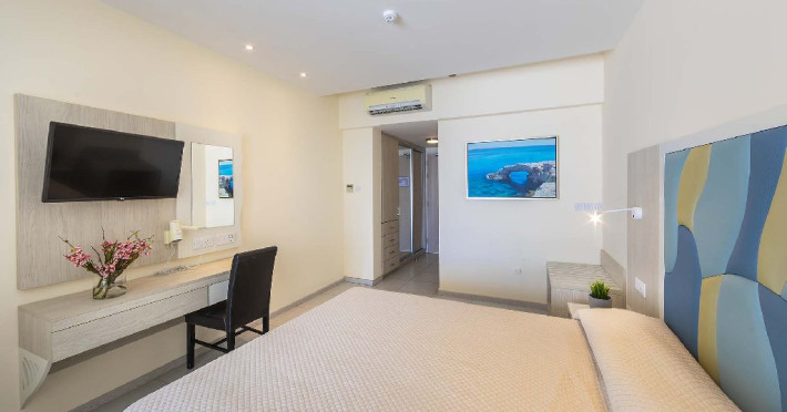 Descriere: Acest hotel de lux de patru stele este situat in Ayia Napa, principala statiune cosmopolita din Cipru. Cu vedere la magnificul golf Ayia Napa si la plaja, cu vederi uimitoare. Un hotel nou construit, cu atmosfera prietenoasa, moderna si relaxanta, ofera o oportunitate excelenta pentru cupluri si familii. Dotari camera: Hotelul Tofinis Luxury are un total de 244 de camere spatioase si luminoase, repartizate pe 4 etaje. Camerele sunt proiectate modern, cu balcoane mobilate care ofera confort, o senzatie de casa si un somn minunat. Oaspetii pot alege intre camere de familie, vedere la mare, vedere laterala la mare, superioare si apartamente. Web site: https://tofinis.com/