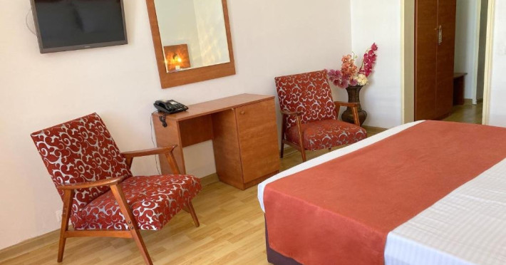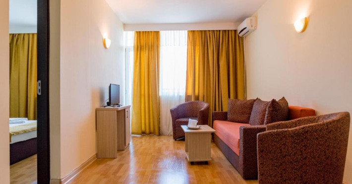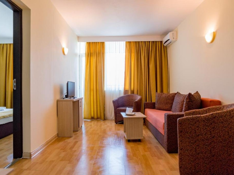 Informatii importante 1) Rezervarile achitate in avans indiferent de procent sunt nerambursabile*. 2) Sejurul sau mesele se pot achita si cu card de vacanta. 3) Check-in-ul se face de la ora 18.00. In cazul in care exista disponibilitate turistii se pot cazamai devreme. 4) Check-out: pana la ora 11:00. 5) Late check-out doar daca nu este rezervata camera: intre orele 11:00 - 14:00 se achita la receptie 75 Lei, intre orele14:00 - 16:00 se achita suma de 150 Lei, iar dupa ora 16:00 se achita tariful aferent ultimei nopti de cazare. Se avizeaza receptia cu o cel putin o ziinainte si doar dupa plata este confirmat Late C/O. 6) Apartamentele sunt formate din doua camere, dormitor cu pat matrimonial, living cu canapea extensibila, baie cu dus. 7) Camerele si apartamentele dispun de: TV LCD, mini racitor, A/C, bai cu dus. 8) Nu se accepta cazarea persoanelor cu animale de companie;