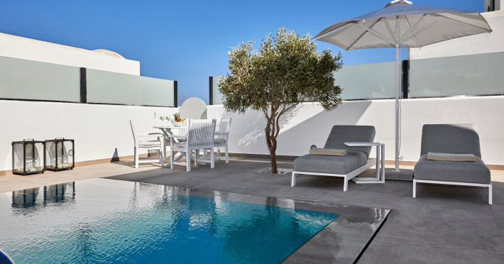 Tramonto Private Villa is located in Monolithos, Santorini. The air-conditioned accommodation is within 90 meters. from the beach of Monolithos.A luxurious brand new villa with a heated private outdoor pool welcomes you to enjoy Santorini at its best!On the first floor, where the entrance of the villa is located, features an open plan living room with a fully equipped kitchen. A comfortable bedroom where there is easy access to the outside of the villa, as well as a private bathroom.Upstairs, two luxury bedrooms, equipped with king-size beds and a private bathroom. Luxurious amenities with all the modern comforts will enhance your stay, making it an experience you will never forget!On the outside of the villa offers sun loungers and umbrellas to enjoy the sun with a refreshing cocktail.