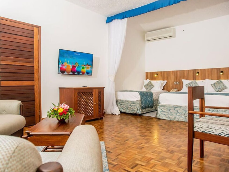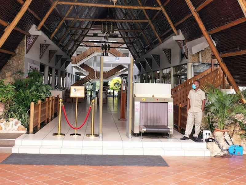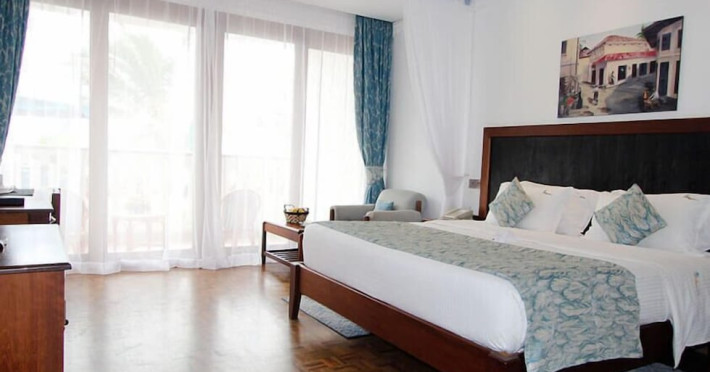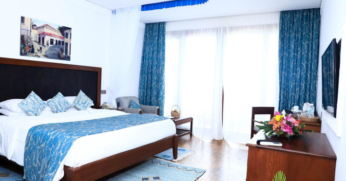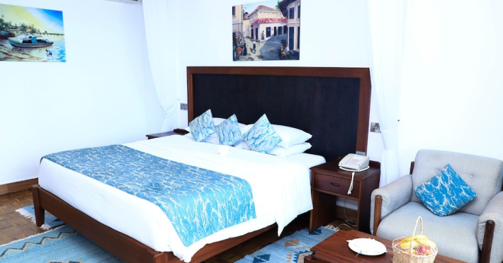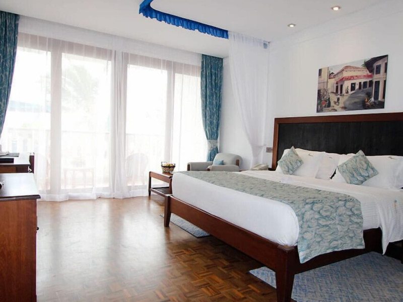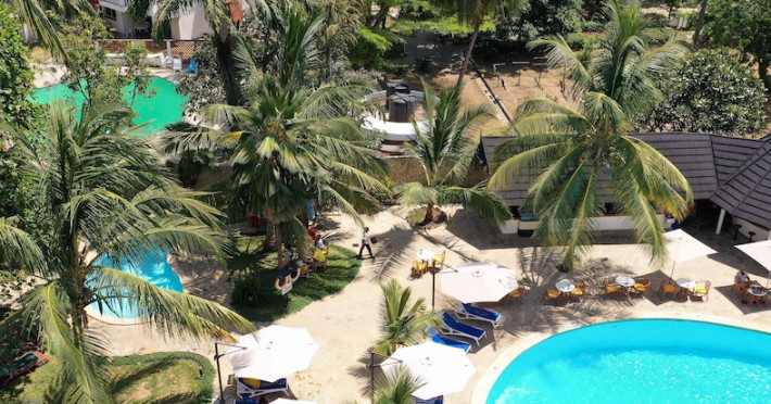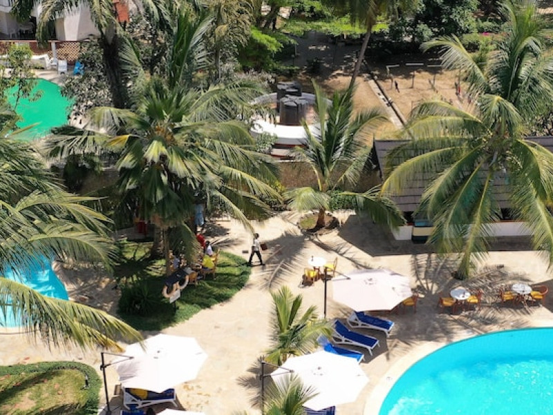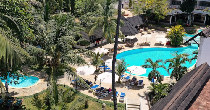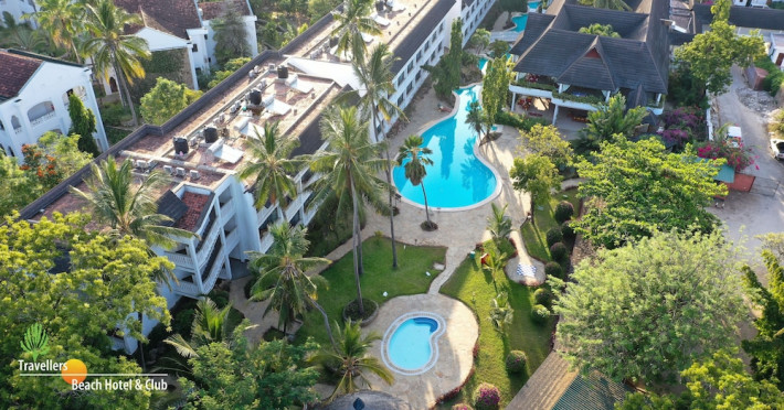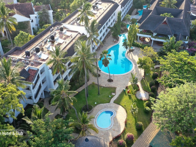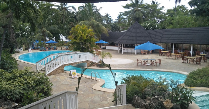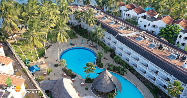 Located on Bamburi Beach, 10 km from the center of Mombasa, this 4-star hotel offers air-conditioned rooms and suites with balconies and Indian Ocean views. Some rooms feature four-poster beds. Each room includes an en suite bathroom with a separate bath and shower. Guests can enjoy a buffet breakfast at Shibe Restaurant and dine at the Italian, Indian, and thatch-roofed grill restaurants. The hotel features a large lagoon-style outdoor pool and three outdoor swimming pools, a private beach, and offers activities such as diving, snorkeling, and glass-bottom boat tours. Amenities include complimentary wireless internet access, a business center, a 24-hour front desk, multilingual staff, concierge services, gift shops, laundry services, and children’s activities. Dining options include Pwani Kofi Bar specializing in Indian cuisine, a coffee shop/cafe, 24-hour room service, a complimentary reception, a beach bar, a poolside bar, and two swim-up bars. Massages, body treatments, and facials are available. The hotel also offers event facilities including a conference center and meeting rooms. An airport shuttle is available for a surcharge, and free self-parking is provided. The Travellers Beach Hotel and Club is a hotel.