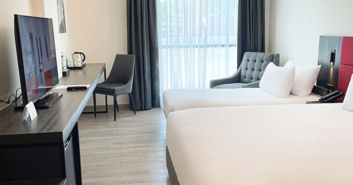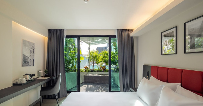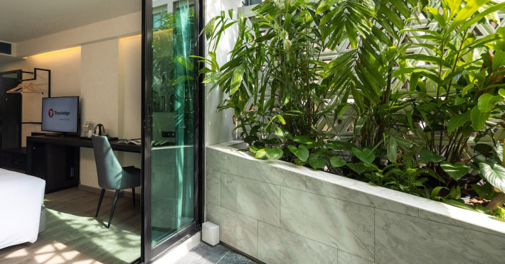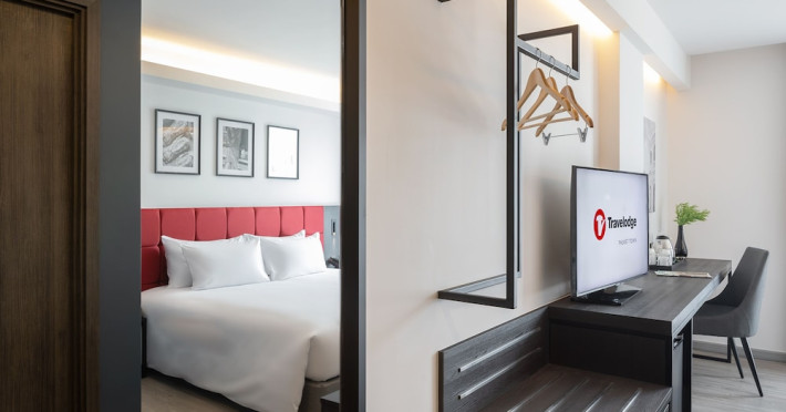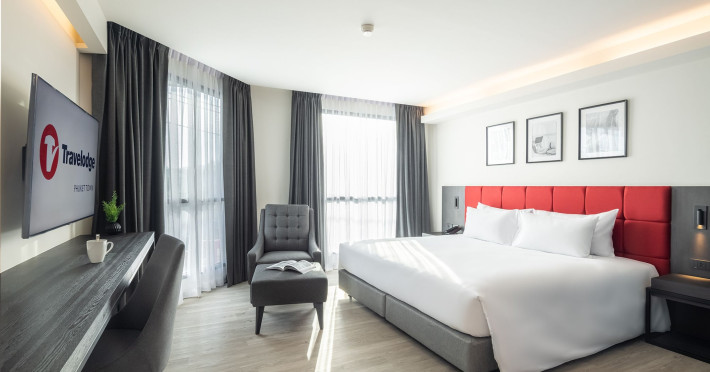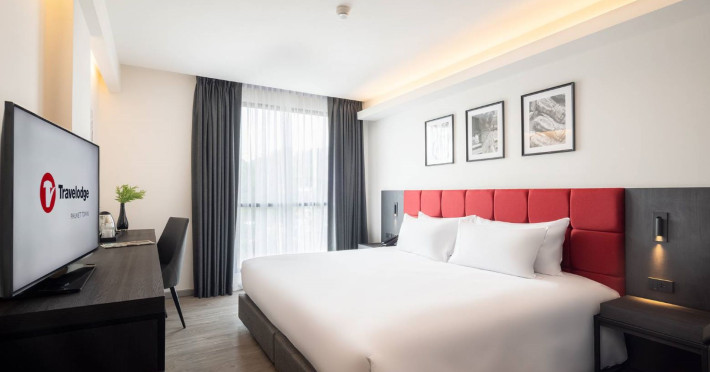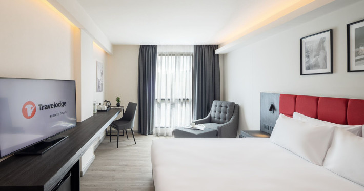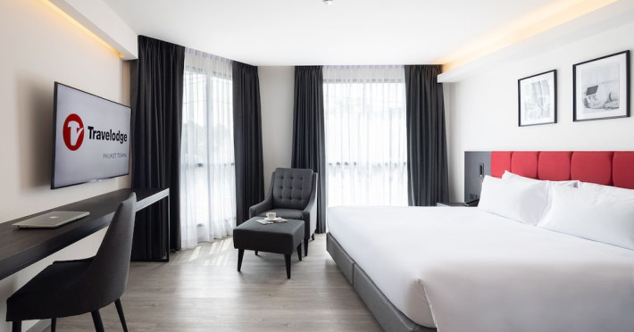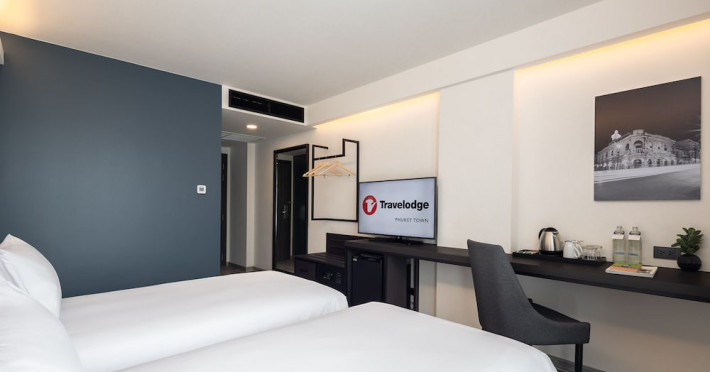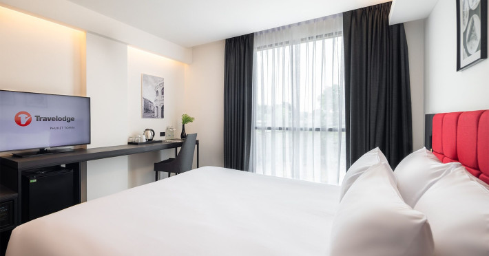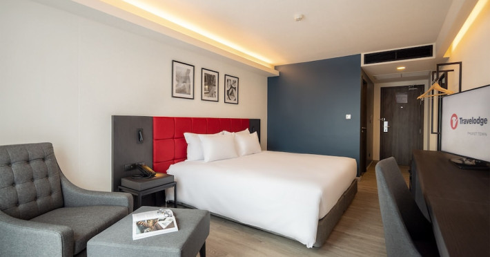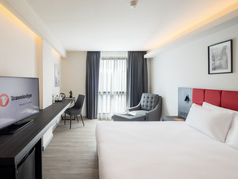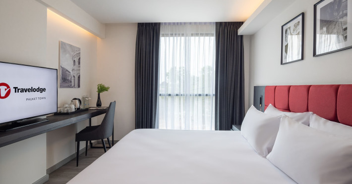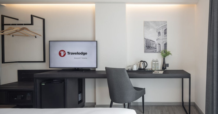Located in Phuket Town, Travelodge Phuket Town offers accommodation with an outdoor swimming pool, fitness centre, garden, restaurant and lobby bar. It features 165 air-conditioned rooms with free Wi-Fi. Each room includes an en-suite bathroom with a shower, complimentary toiletries, and a hairdryer, as well as a flat-screen TV with cable channels, a safety deposit box, a work desk, and tea and coffee making facilities. Some rooms offer a balcony or terrace. The hotel provides room service, a 24-hour front desk, multilingual staff, concierge service, luggage storage, dry cleaning/laundry services, and free self-parking. A buffet, continental, or American breakfast is available daily for a fee. The hotel is within a 5-minute drive of Central Festival Phuket Shopping Center and Patong Go-Kart Speedway and Phuket Offroad Fun Park. Phuket International Airport is 31 km away. Nearby attractions include Big C Supercenter - Bypass Road, Naka Weekend Market, Tesco Lotus - Phuket Town, Jui Tui Shrine, Chillva Market, Thai Hua Museum, and Phuket Botanic Garden. The Travelodge Phuket Town is a hotel.