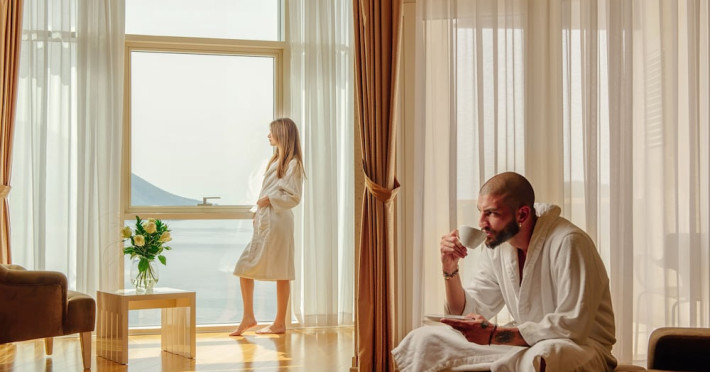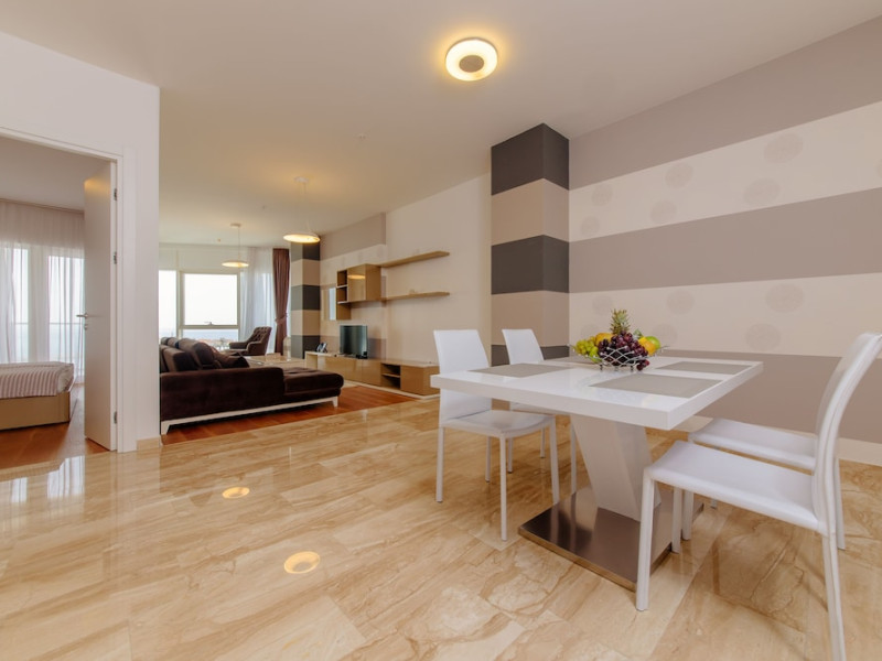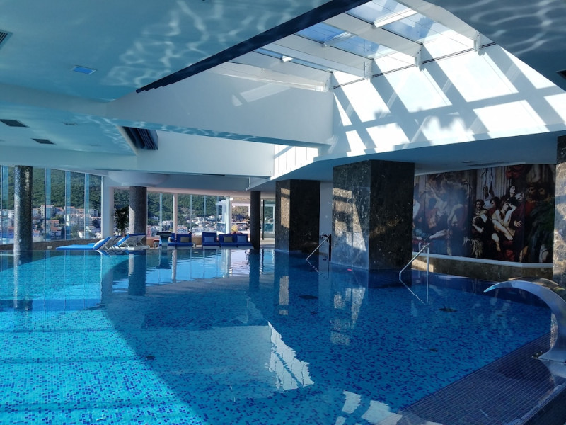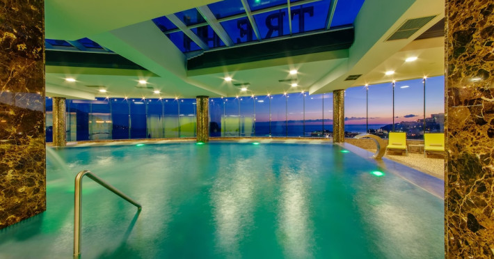 Located in Budva, 150 meters from Slovenska Beach, Hotel Tre Canne offers air-conditioned apartments with a private terrace, flat-screen satellite TV, and a private bathroom with complimentary toiletries, bathrobes, and slippers. Apartments also include a dining table, hob, and fridge. Complimentary Wi-Fi is available. Guests can enjoy Mediterranean cuisine at the on-site restaurant with a bar/lounge, or utilize room service during limited hours. A complimentary cooked-to-order breakfast is served daily from 8:00 AM to 11:00 AM. The hotel features a spa with massages, body treatments, facials, a sauna, and a Turkish bath, as well as an indoor pool and fitness center. Additional amenities include a hair salon, luggage storage, laundry facilities, dry cleaning/laundry services, and a poolside bar. Free self-parking is available. Tivat Airport is located 24 km from the property, and an airport shuttle service is available for an extra charge. The Tre Canne is a hotel.