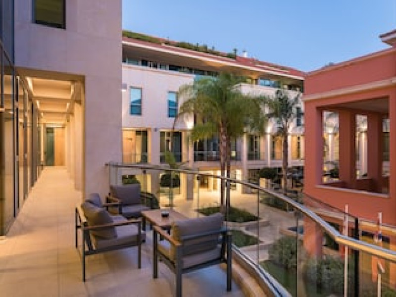 Proprietatea face parte dintr-un complex care include și o bancă, o cafenea și câteva magazine.