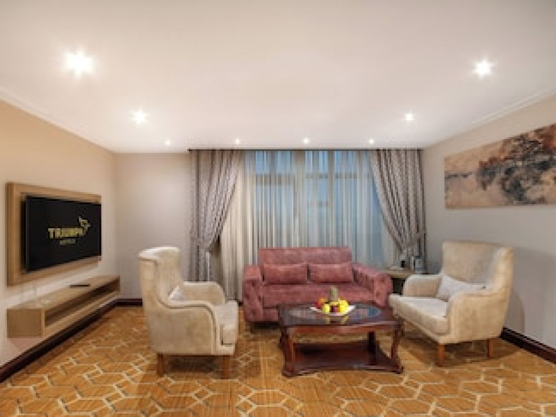 The Triumph Plaza Hotel, a sophisticated 4-star establishment, offers an ideal location in the desirable Heliopolis area of Cairo. Just minutes from Cairo's main thoroughfares, including Salah Salem Avenue, and conveniently close to the international airport and conference center, the hotel provides easy access to the city's key attractions and vibrant shopping districts. Its 146 elegant rooms and suites feature warm, spacious designs, furnished for comfort and relaxation. Enjoy exceptional views from your private balcony, and take advantage of 24-hour room service and amenities such as satellite television, high-speed internet, and a digital safe.