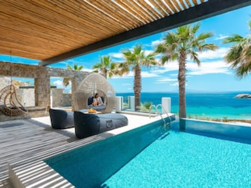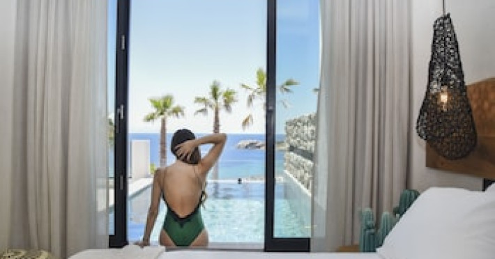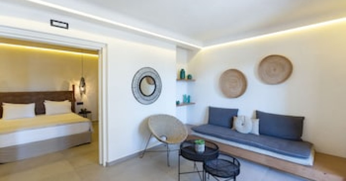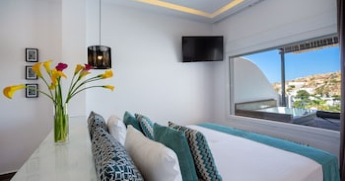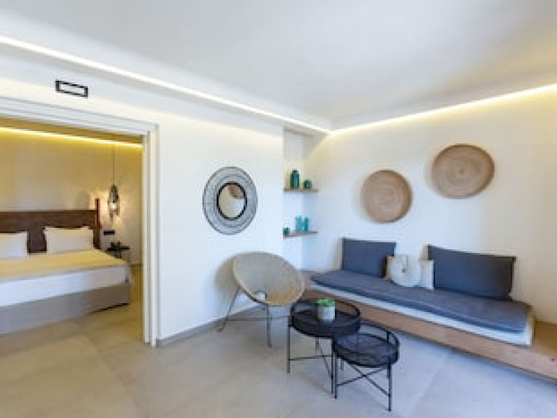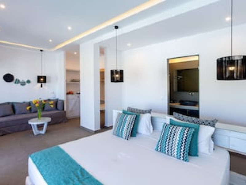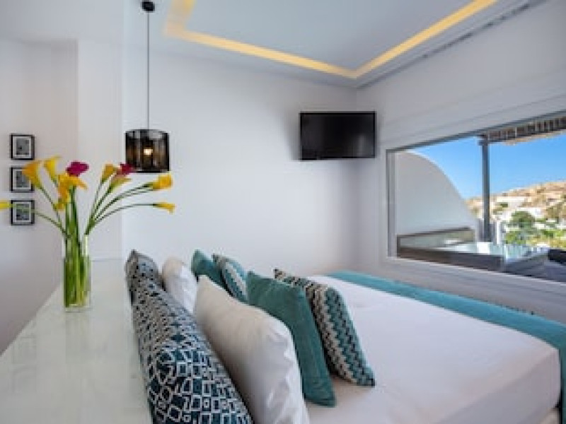 Property Location When you stay at Tropicana Hotel , Suites & Villas Mykonos in Mykonos, you'll be near the beach, a 1-minute drive from Paradise Beach and 7 minutes from Windmills of Mykonos. This spa hotel is 6.8 mi (10.9 km) from Mykonos New Port and 4 mi (6.4 km) from Mykonos Old Port.