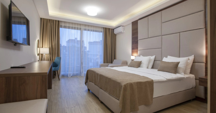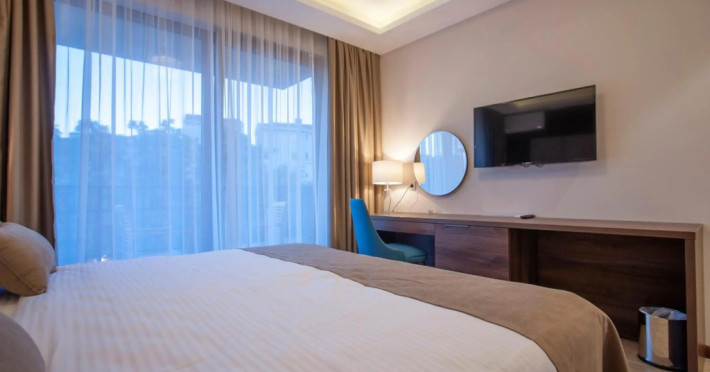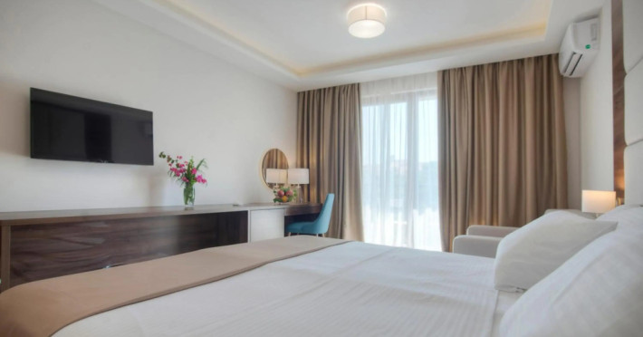 Good choice if you’re looking forward to taking some rest at the hotel as much as to walking around the city. Hotel «Twelve by Aycon Hotel» is located in Budva. This hotel is located 1 km from the city center. You can take a walk and explore the neighbourhood area of the hotel — Greco Beach, Slovenska Beach and Pizana Beach.,Spend an evening in a nice atmosphere of the bar. Taste the local cuisine and have a rest in the restaurant. Free Wi-Fi on the territory will help you to stay on-line. If you travel by car, you can park in a parking zone.,Here, you can treat yourself with water procedures as there will be a pool and an outdoor pool. To book an excursion, consult the tour assistance desk of the hotel. The staff of the hotel will order a transfer for you. Accessibility: there is an elevator/lift.,Additional services that the hotel offers to its guests: a laundry. The staff of the hotel speaks English.,Here’s what you’ll find in the room to have a rest after a long day: a TV and a mini-bar. Please note that the listed services may not be available in all the rooms.,No-show availability: unspecified. No-show day period: unspecified. No-show time: ,Visa support: No information on the Visa support, Number of rooms: 12., Frequency: 50., Voltage: 230., Sockets: Type c. Type f.
