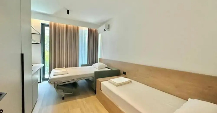 A perfect fit for a big group of travellers: apartment «Two bedroom Apartment Onia» is located in Budva. This apartment is located in walking distance from the city center. You can take a walk and explore the neighbourhood area of the apartment — Greco Beach, Ricardova glava and Pizana Beach.,Free Wi-Fi on the territory will help you to stay on-line. If you travel by car, you can park in a parking zone. Tourists who can’t live without swimming will appreciate an outdoor pool. The staff of the apartment will order a transfer for you.,Accessible for guests with disabilities: the elevator helps them to go to the highest floors.,No-show availability: unspecified. No-show day period: unspecified. No-show time: ,Visa support: No information on the Visa support, Number of rooms: 100., Frequency: 50., Voltage: 230., Sockets: Type c. Type f.