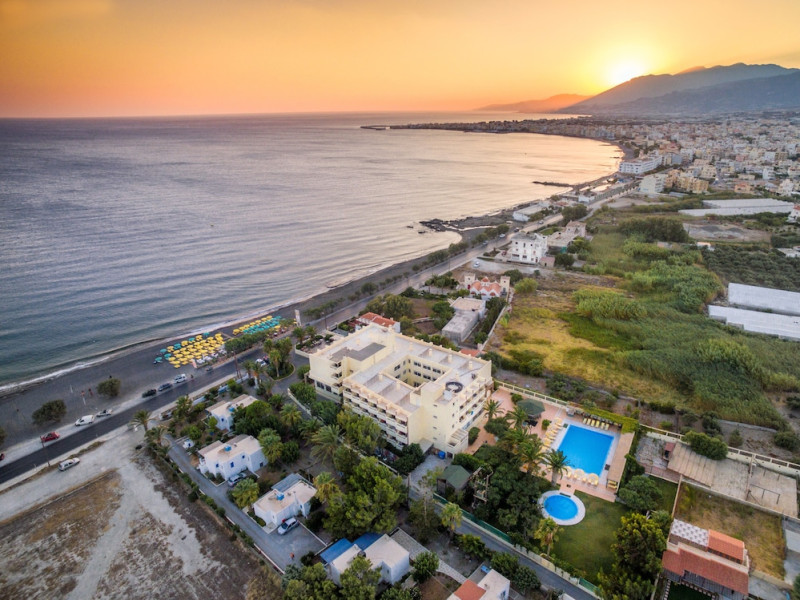 The hotel amenities include a swimming pool, restaurant, bar, snack and pool bar, 24-hour reception, dry cleaning (extra charge), laundry service (extra charge), wireless Internet access (extra charge) and parking.The bedrooms feature air conditioning, satellite TV, telephone, mini bar, safety box, hairdryer and wireless Internet access (extra charge).Address: Ierapetra, Agios Nikoloas, P.O. Box 26, 72200 Ierapetra, Crete, Greece.