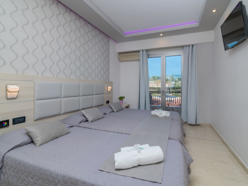 Facilities and services include 24hr reception, air conditioning, bar (extra charge), breakfast room, cafe (extra charge), car parking, concierge facilities, currency exchange, elevator, ironing facilities (extra charge), lounge, multilingual staff, pool bar (extra charge), safety deposit, shuttle service (extra charge), swimming pool and Wi-Fi.Rooms feature air conditioning, balcony/terrace, cable/satellite TV, cleaning/housekeeping, coffee/tea maker, desk, hairdryer, minibar/fridge (extra charge), non-smoking rooms, private bathroom, room service, safe box, shower, telephone, toiletries, towels and Wi-Fi.Address: Main Street, Laganas 29092 Zakynthos Greece