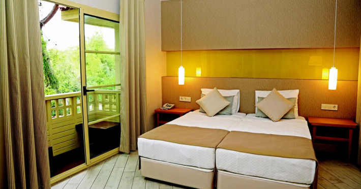 Acest complex este situat pe coasta oraşului Kemer şi pune la dispoziţie o plajă privată cu nisip şi debarcader. Proprietatea este înconjurată de o grădină plină de verdeaţă şi include piscine în aer liber, un centru de fitness şi o baie turcească. Proprietatea oferă un restaurant dedicat pentru copii, un loc de joacă, dar şi activități creative ca pictura pe față, cursuri de gătit, ateliere de artizanat și jocuri ale minţii.
