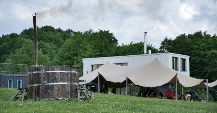 SAUNA Uita de griji si relaxeaza-te total in mica noastra sauna din casuta estoniana! Lasa-ti muschii sa se destinda dupa o zi plina de aventuri si plamanii sa se curete perfect, imbunatatindu-ti respiratia. CAZARE CU CIUBARAlterneaza sesiunile de sauna cu desfatarea in ciuberele cu apa fierbinte, lasandu-ti mintea sa zboare departe, peste culmile semete ale masivelor Piatra Craiului sau Bucegi. E cadrul ideal sa-ti pui intrebari existentiale, precum Mai tarziu trag un pui de somn in cort, sau servesc un pahar de vin pe terasa mea? Asa-i ca-i minunat sa ai ciubar la cazare? CONFORT DEPLINDesi suntem in inima naturii, nu am facut rabat de la calitate si confort. Dusurile si toaletele sunt cat se poate de moderne, grupurile sanitare fiind, evident, separate pentru barbati si femei. Avem grija ca aceste spatii sa nu duca vreodata lipsa de sapun antibacterian, gel de dus, prosoape din hartie, articole cosmetice (discuri demachiante, creme de corp sau betigase de urechi.) Cabinele de dus sunt individuale pentru fiecare cort sau bungalow. Totul este igienizat si dezinfectat in mod regulat, la ore fixe.