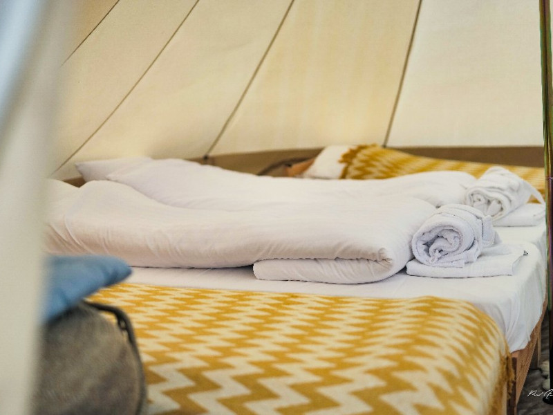 CORTURI PREMIUM Vrem sa te bucuri de cea mai frumoasa experienta sub cerul Carpatilor. De aceea, am ridicat cu dragoste pentru natura si oaspeti 12 corturi (ce pot gazdui pana la 48 de oaspeti), dotate cu cele mai bune conditii, ce iti vor incanta privirea cu panorama spectaculoasa a Pietrei Craiului. Materialul cortului este din bumbac 100%, regenerabil si permite aerului sa circule fara probleme in interior, iar paturile incapatoare si soba vintage se integreaza perfect in acest spatiu, pe cat de rustic, pe atat de confortabil. Corturile au 3m inaltime si sunt urcate pe o platforma din lemn, ce serveste si drept terasa unde sa-ti bei cafeaua in tihna, sub dezmierdarea soarelui. Toate corturile au nume de stele si constelatii, ca tu sa patrunzi intr-o atmosfera magica, inca din prima clipa a sosirii tale. Resortul nostru ofera mai mult decat cazare la corturi incalzite. Ofera magie, siguranta si confort sporit. In fiecare cort sunt sobe si paturi cu saltea premium, din spuma poliuretanica, iar lenjeriile de pat sunt confectionate din satin si bumbac. Prosoapele si halatele te asteapta cuminti la locul lor. Desigur, toate articolele textile sunt igienizate anterior intr-o curatatorie profesionala. Fiecare cort din Ursa Mica Glamping Resort e dotat cu senzor de monoxid de carbon si stingator antiincendiu, pentru ca tu sa fii mereu in siguranta.