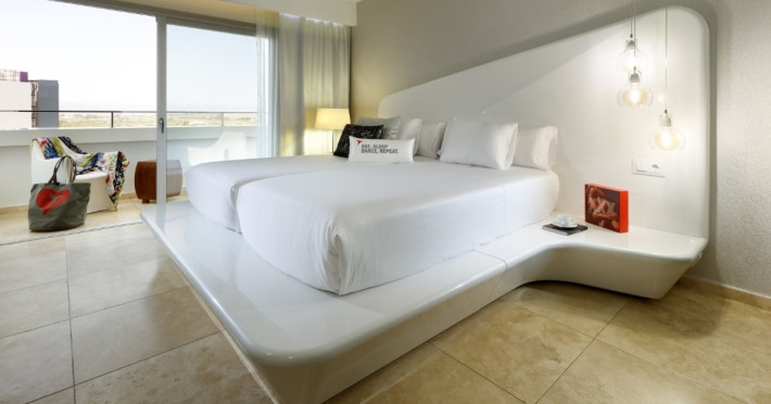 This worldwide famous establishment is superbly located in the heart of Playa den Bossa, a major holiday resort on the Spanish island of Ibiza. It is an amazing leisure and party hotel ideal for young people wishing to make the best of their holidays. It has everything for a relaxed stay, although it is perfect for those looking for an original and exciting stay in a quality hotel. The guest rooms feature a minimalist décor and natural finishes come together with the state-of-the-art technology in order to guarantee a comfortable stay. All the guests who have the chance to stay at this stunning complex will have free access to the amazing hotel parties.