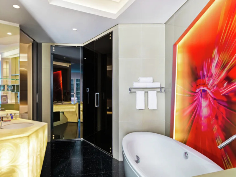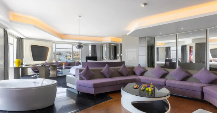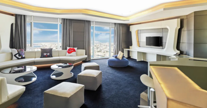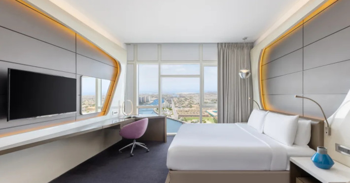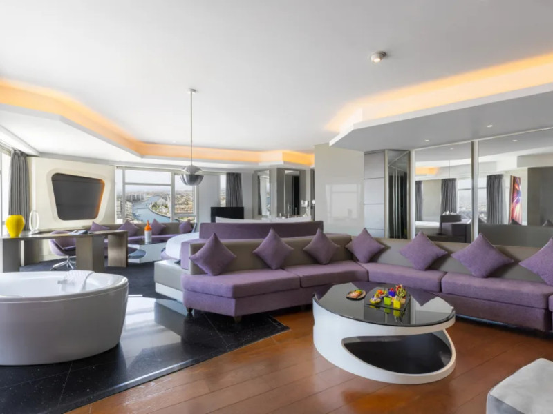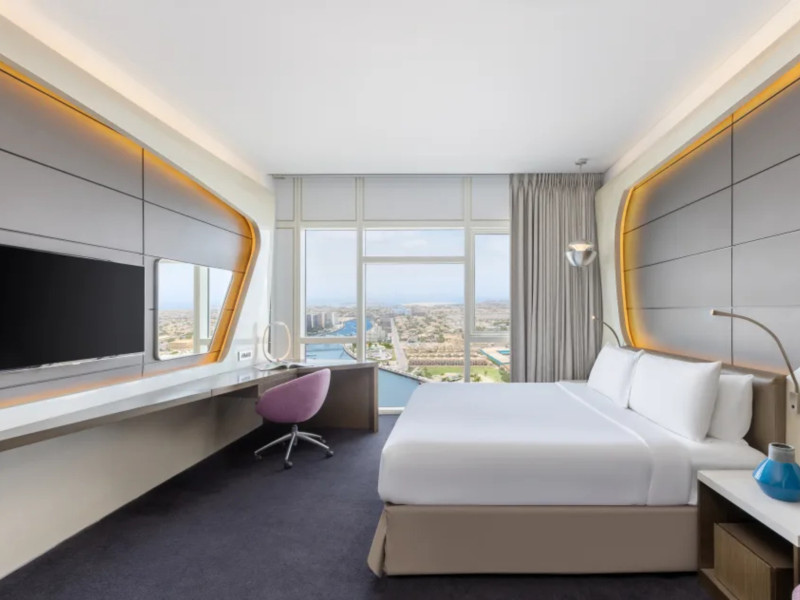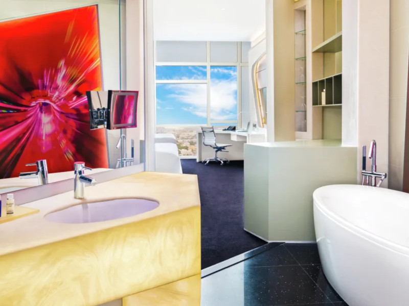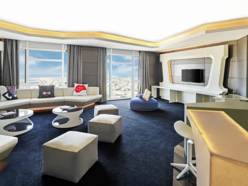 The hotel V HOTEL DUBAI, CURIO COLLECTION BY HILTON is just a few steps from the city centre. The hotel is equipped with Wi-Fi, a lift, a shop, a jacuzzi, showers and changing rooms, parking spaces as well as a TV lounge. In the outdoor area you willThe hotel V HOTEL DUBAI, CURIO COLLECTION BY HILTON is just a few steps from the city centre. The hotel is equipped with Wi-Fi, a lift, a shop, a jacuzzi, showers and changing rooms, parking spaces as well as a TV lounge. In the outdoor area you will find a garden as well as a heated pool (open all year). For children there is also a childrens pool. Furthermore, outside you can find a sun terrace. Inside the hotel you can use an indoor pool. You can store your valuables in the safe, and your luggage in the hotels storage room. For your entertainment, the hotel offers a library/reading room and a disco. For the young hotel guests there is a playground. If necessary, you can contact the medical centre. For conventions and other business meetings, the hotel offers a conference area with fax. A photographer can also be ordered from the hotel for business events. If you want to explore the holiday region, you can use the car and motorbike rental service close to the hotel (extra fee). Smoking is permitted in the hotel. The hotel requires that all guests pay a deposit upon arrival. Catering Breakfast is offered from the buffet. Dinner is also served as a buffet. In the gastronomic area also vegetarian dishes are served. Sports amp; Leisure A sauna (extra fee) awaits you in the spa area.