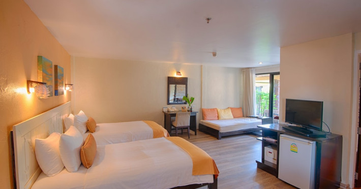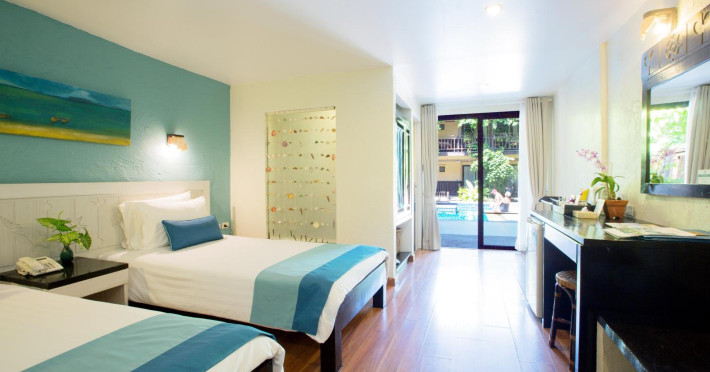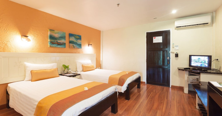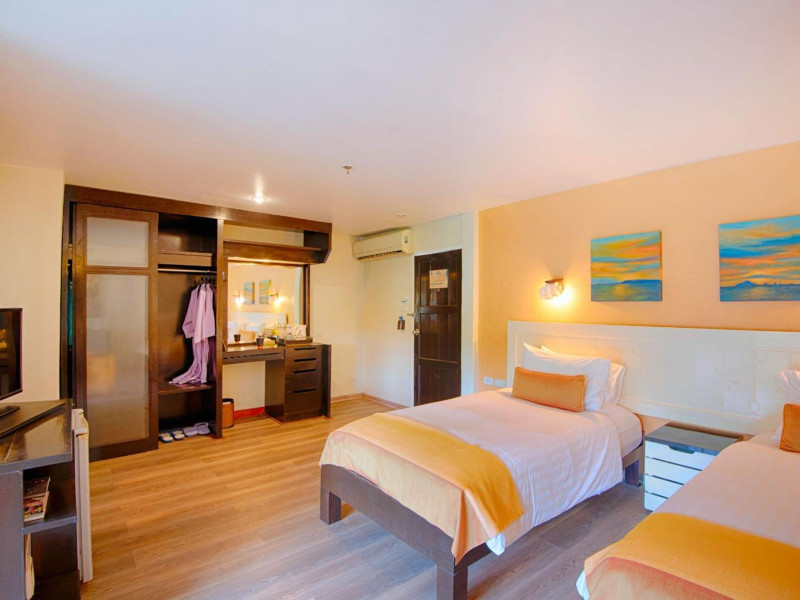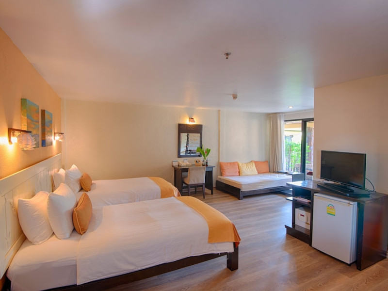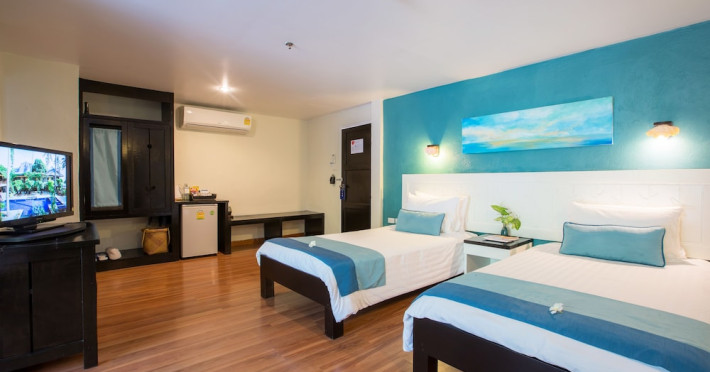 Located on Ao Nang Beach in Krabi, Vacation Village Phra Nang Inn offers accommodations blending boutique ambiance with Southern Thai style. Guests can enjoy complimentary Wi-Fi, concierge services, and on-site dining at two restaurants, including Poda Beachfront Dining, as well as a coffee shop/cafe and a bar/lounge. Local cuisine breakfasts are available for a fee. The hotel features an outdoor pool, spa offering massages and body treatments, and tour and transport services. Individually decorated, air-conditioned rooms include a flat-screen TV, safe, minibar, and a private bathroom with complimentary toiletries and a hair dryer. Select rooms also have a balcony or terrace. The hotel provides complimentary parking, luggage storage, safety deposit boxes, laundry service, and daily housekeeping. Airport transfers, taxi, car hire, and shuttle services are available. The hotel is near Ao Nang Landmark Night Market and Nopparat Thara Beach. The Vacation Village Phra Nang Inn is a Tourist hotel. Located in Beach - Ao Nang Beach area. The nightlife/restaurants are within walking distance from the hotel.