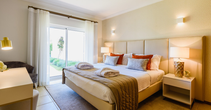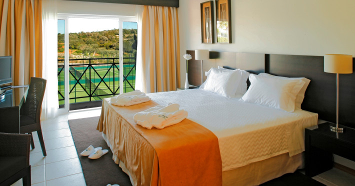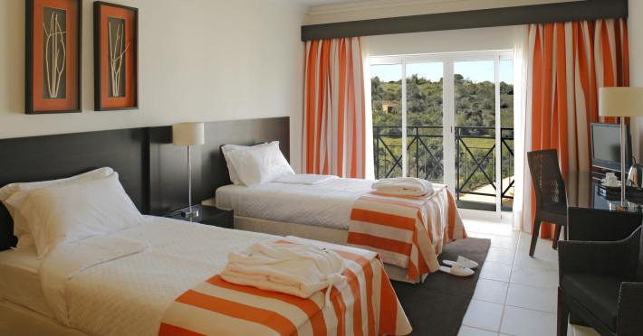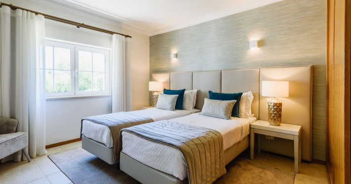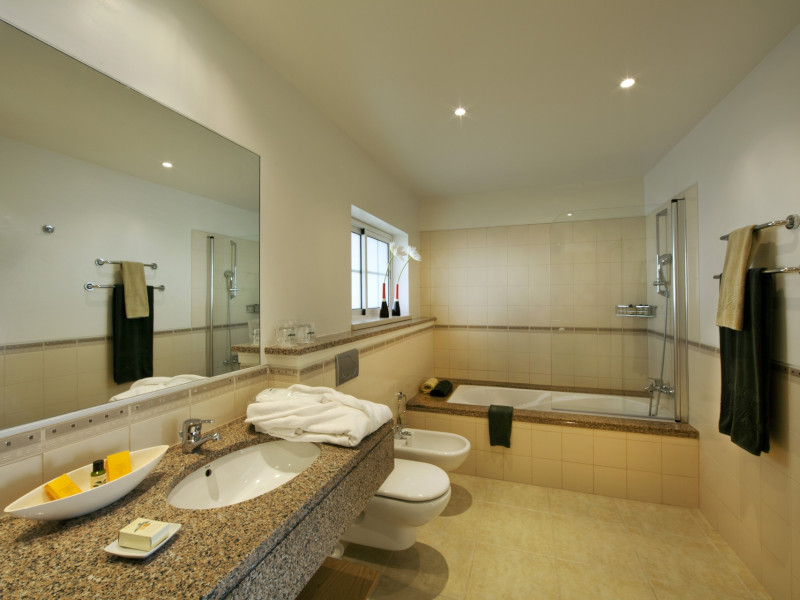 The accommodation Vale d'Oliveiras Quinta Resort & Spa is located approximately 5 km from a beach. The city centre is around 4 km away. The hotel has a 24h reception, Wi-Fi, a lift, cash machine, a jacuzzi as well as parking spaces. Outside there is a separate children's pool, where sun loungers, sun umbrellas and pool towels are available for free. Furthermore, you can relax outdoors in the garden. Inside the hotel you can use an indoor pool. You can store your valuables in the safe, and your luggage in the hotel`s storage room. In addition, the hotel Vale d'Oliveiras Quinta Resort & Spa is video-monitored 24h a day. For the young hotel guests there is a playground. There is also a laundry service available at an additional cost to customers. Ironing equipment can be rented at the hotel for a fee. For your comfort there is a concierge service. If you want to explore the holiday region, you can use the car rental service close to the hotel (extra fee). Due to its barrier-free facilities , such as barrier-free entrances, the hotel is also suitable for wheelchair users. Catering Breakfast is offered from the buffet. Your physical well-being is catered for by the pool bar. Distances