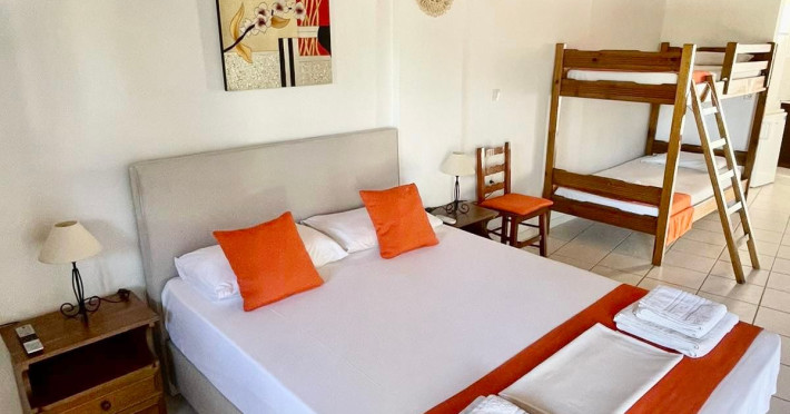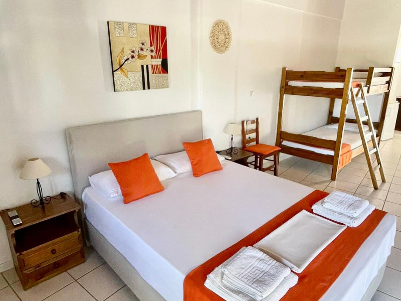Welcome to Valentino Villas & Apartments, a charming family run accommodation in the touristic resort of Vasilikos, on the south east coast of Zakynthos!The lovely small complex is situated in a private area of 5.500 m2, among beautiful gardens and olive groves, just 500 m from the beach, 300 m from the center of the village with the shops, taverns, cafe etc. Banana beach is at 1,3 km, Zakynthos town/port is at 12 km, while ZTH airport is 15 km.All the spacious and comfortable holiday studios & apartments are distributed in five buildings, offering a large list of facilities in order to suit all individual needs, whether you are a family, a couple or a group of friends.Let us welcome you with Greek hospitality!The owner Nana Vardakastani