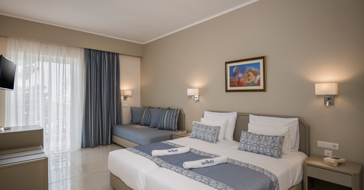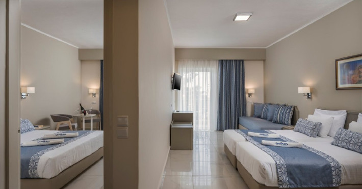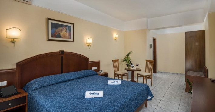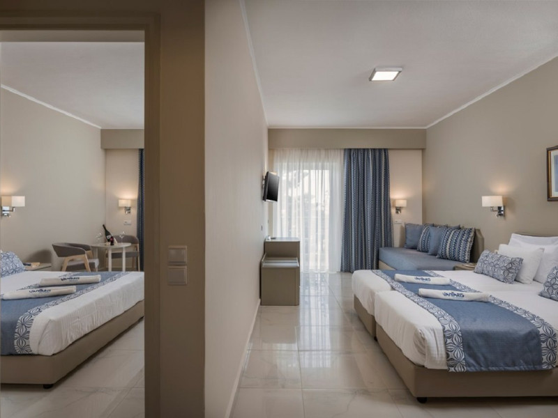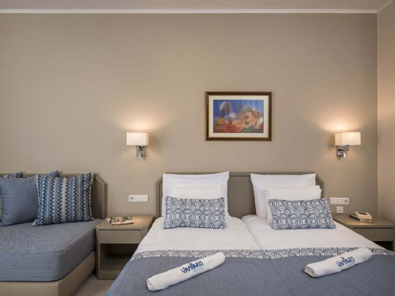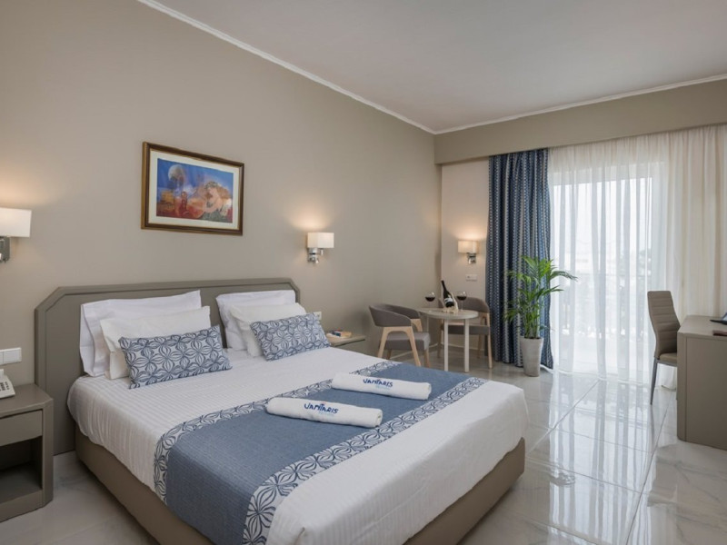 Facilities and services include a swimming pool, pool sunbeds & umbrellas, a garden, an outdoor shower, and a children’s pool.Rooms feature air-conditioning/heating, direct-dial telephone (extra charge), safety deposit box ( extra charge per day), Wi-Fi, TV (with local channels), mini fridge, shower/WC, hairdryer, bathroom amenities, balcony/terrace, maid service (daily), towel change (3 times per week), linen change (3 times per week), baby cot (on request, with an extra charge per day).Note:- Check-in will take place at Vantaris Palace Hotel and if any meals are booked they will also be served at Vantaris Palace.- Guests are entitled to use all facilities & services at sister property Vantaris Palace (approx. 50 m, connected via an underground tunnel).- The operation of certain services & facilities is subject to weather conditions.Address: Kavros, 73007 Georgioupolis, Chania, Crete, Greece.