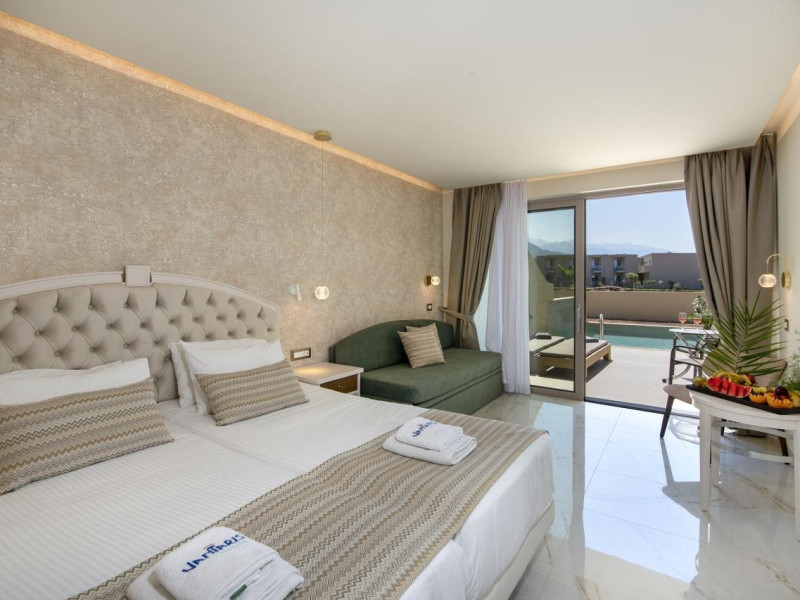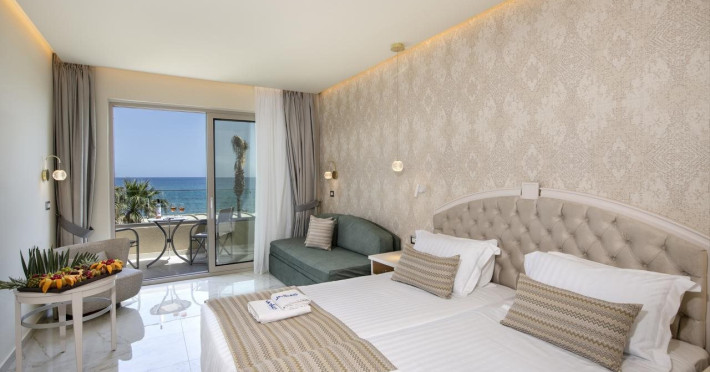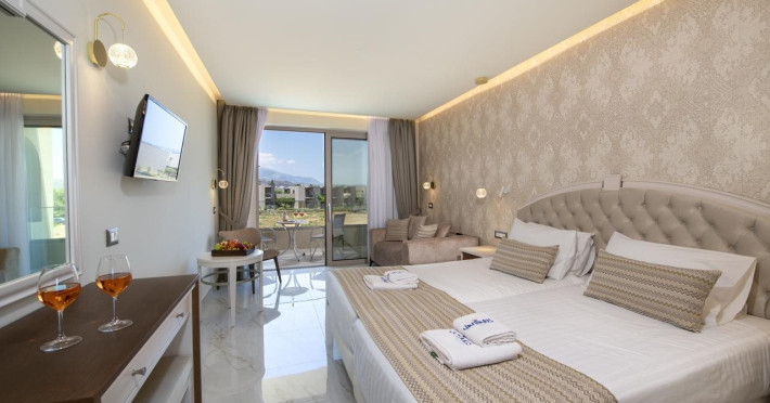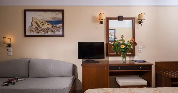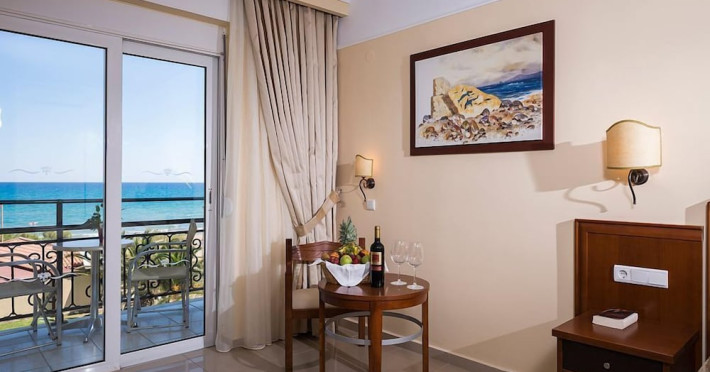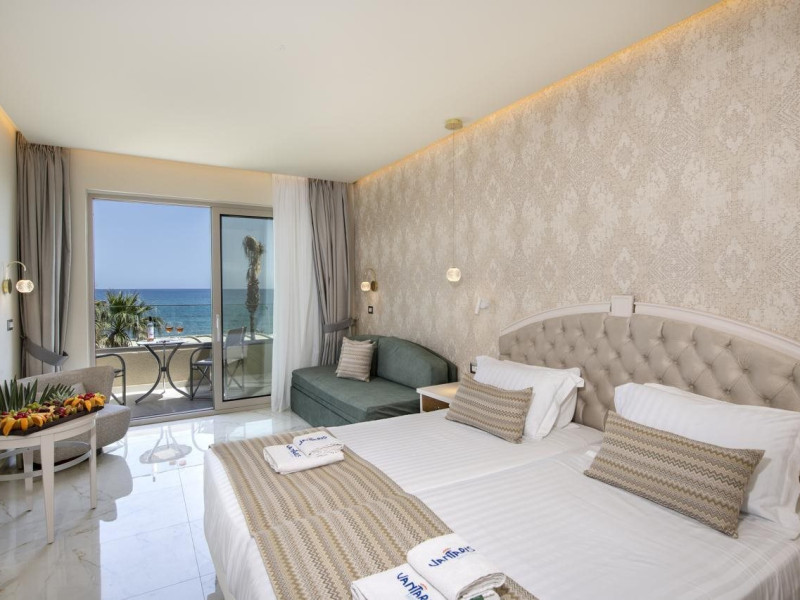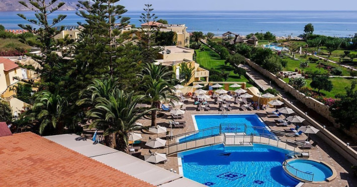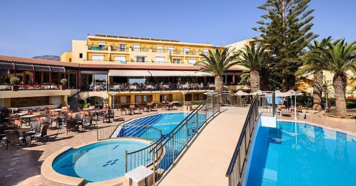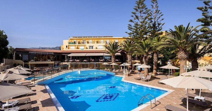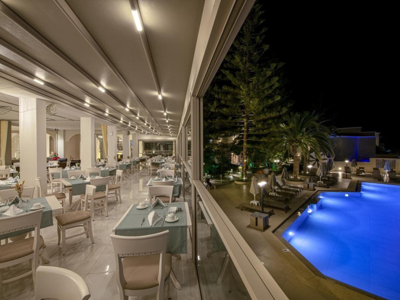 Facilities and services include 24- hours reception, lounge, air conditioning, laundry service, pool, wireless internet, parking, safe (extra charge), gym, sauna, mini market and doctor on call.Rooms feature air conditioning, slippers, mini fridge, television, instant coffee/tea making facilities, iron, ironing board, hairdryer and shower.AI - All Inclusive Breakfast in buffet style in the Main Restaurant Lunch in buffet style in the Main Restaurant Dinner in buffet style in the Main Restaurant Beach bar – snacks, ice cream Local drinks during the meal Beach bar - 11:00 – 18:00 Coffee time: 15:30 – 17:00 ( filter coffee, tea) Main bar - 18:00 – 23:00 all Local drinksAddress: Kavros Asproulianos 73007 Georgioupolis Crete Greece