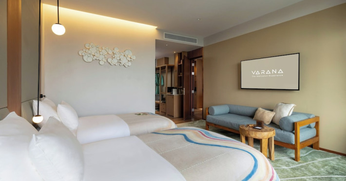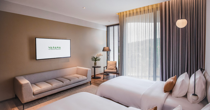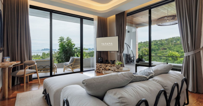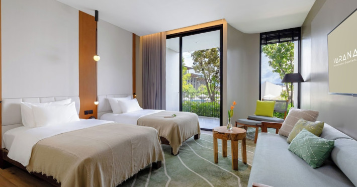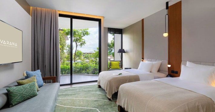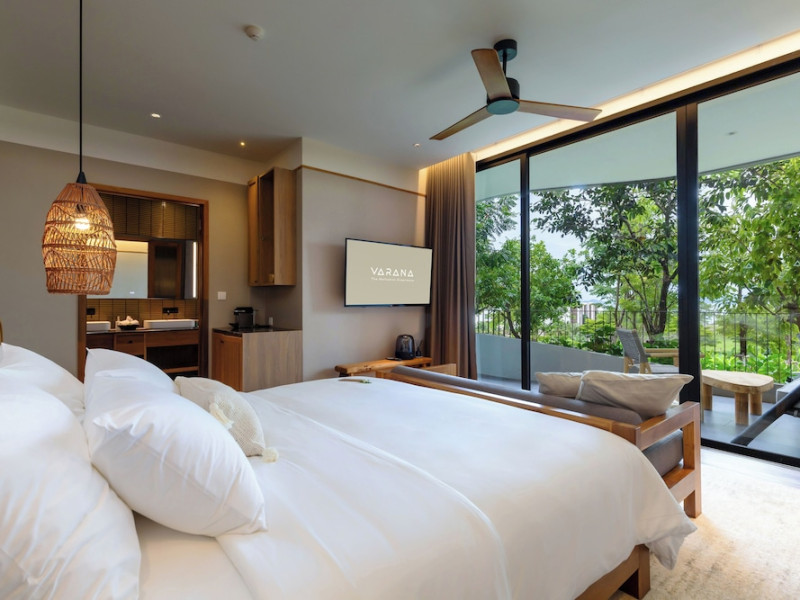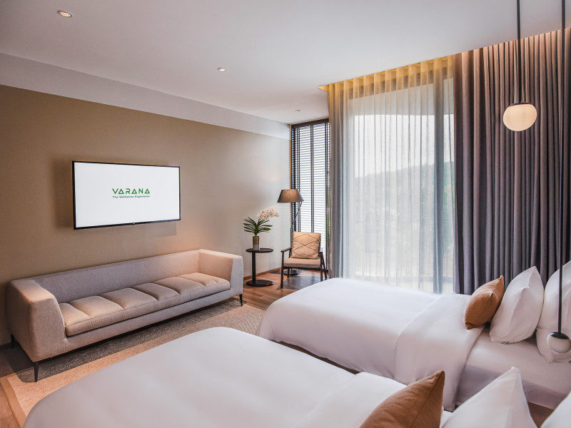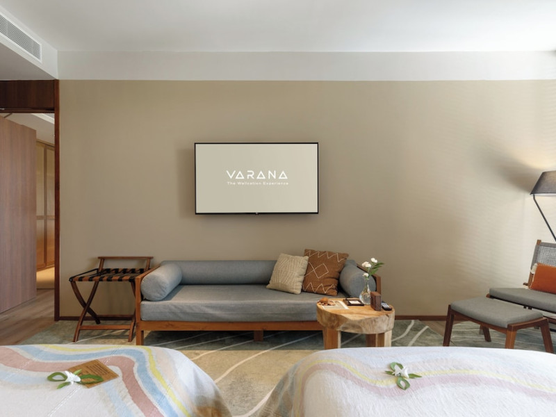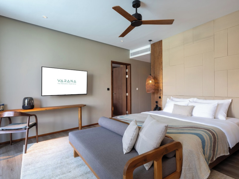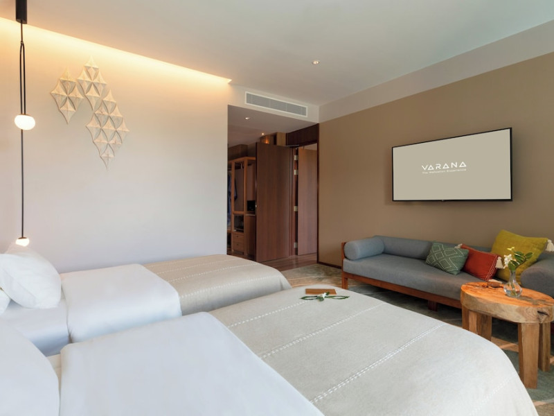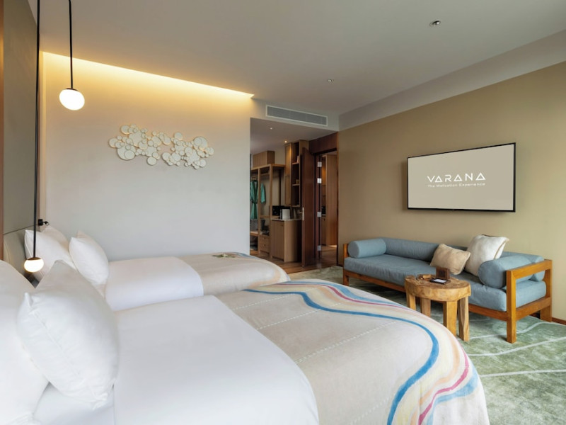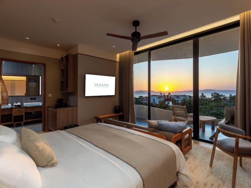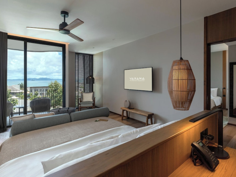 Located in Krabi's Nong Thale area, near Khlong Muang Beach and Tubkaek Beach, VARANA Krabi Hotel offers a wellness-focused experience. It features 141 air-conditioned rooms with minibars, espresso makers, down comforters, premium bedding, 55-inch Smart TVs, and complimentary wireless internet access. Bathrooms include separate bathtubs and showers. Guests can enjoy a full-service spa with massages, body treatments, and facials, as well as two restaurants, a bar/lounge, and a complimentary buffet breakfast. The hotel also offers concierge services, wedding services, dry cleaning/laundry services, a 24-hour front desk, luggage storage, an outdoor swimming pool, a fitness centre, a garden with a terrace, a sauna, and a hot tub. Meeting and conference spaces are available. Free self-parking is provided. Activities such as canoeing are available. The hotel is approximately 31 km from Krabi International Airport. The Varana Hotel is a hotel.