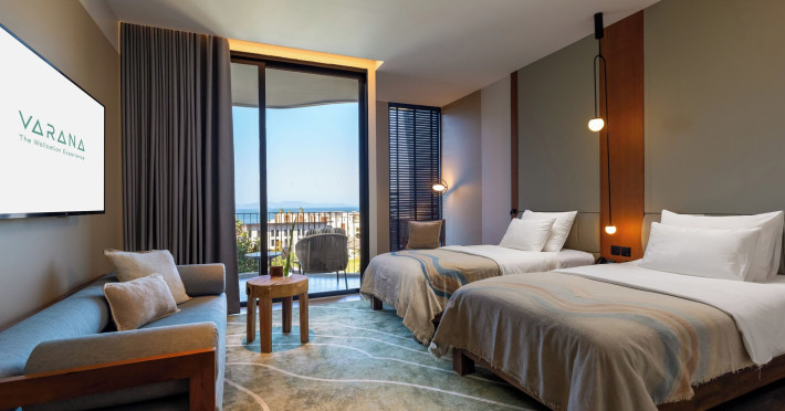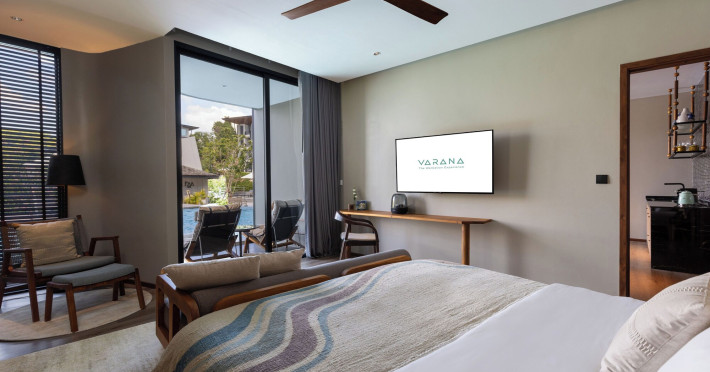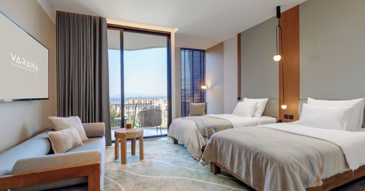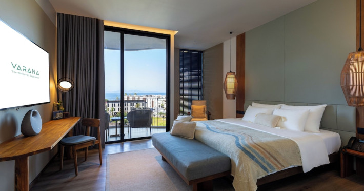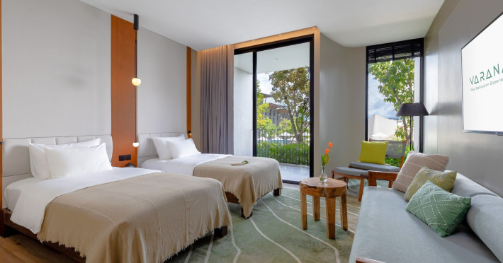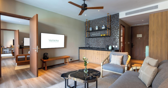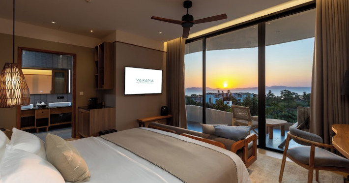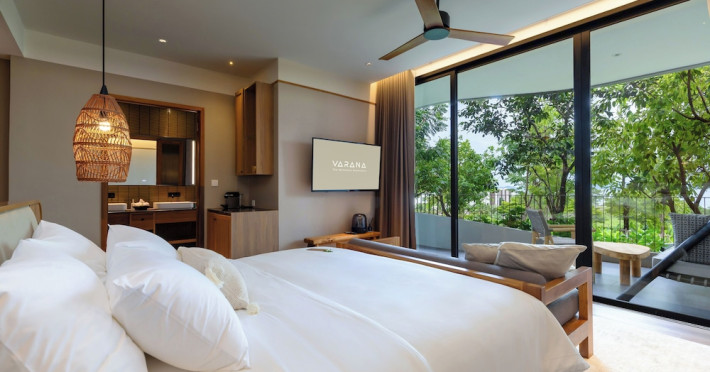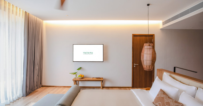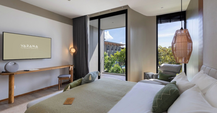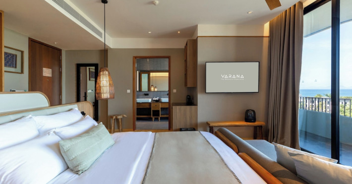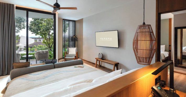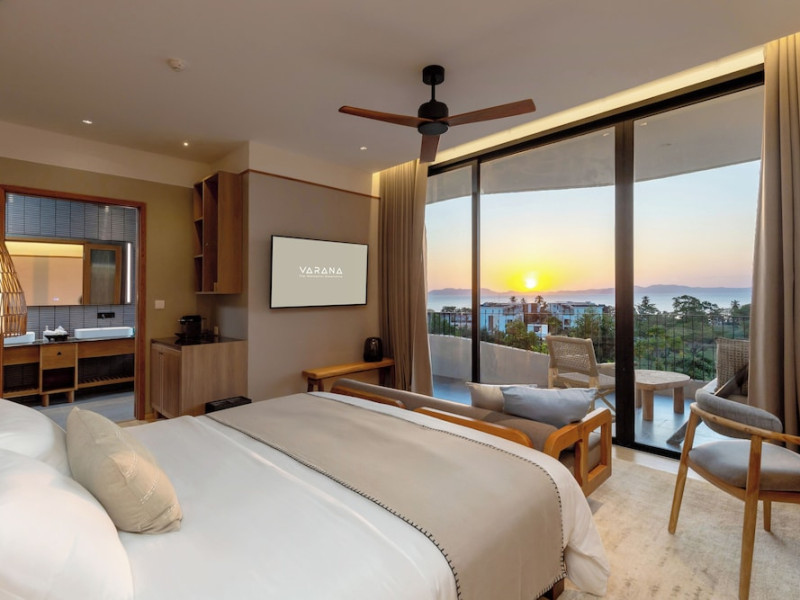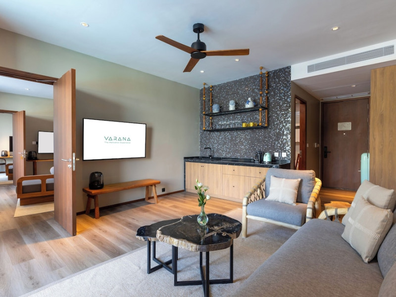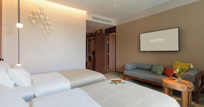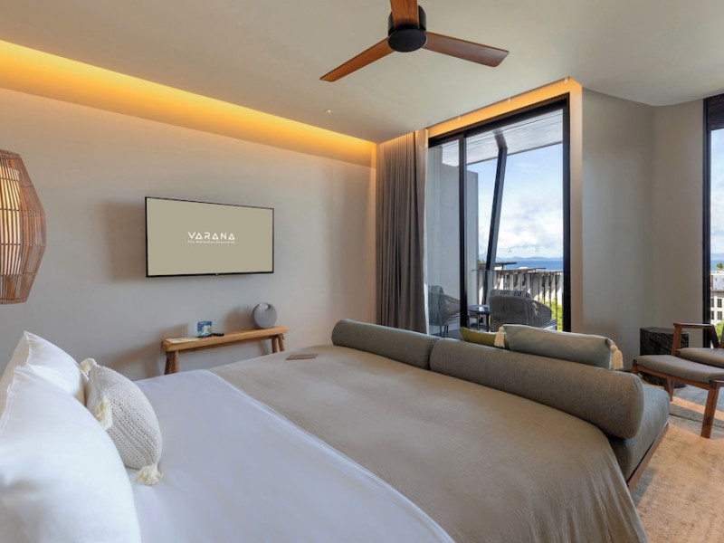 Located in Krabi's Nong Thale area, near Khlong Muang Beach and Tubkaek Beach, VARANA Krabi Hotel offers a wellness-focused experience. It features 141 air-conditioned rooms with minibars, espresso makers, down comforters, premium bedding, 55-inch Smart TVs, and complimentary wireless internet access. Bathrooms include separate bathtubs and showers. Guests can enjoy a full-service spa with massages, body treatments, and facials, as well as two restaurants, a bar/lounge, and a complimentary buffet breakfast. The hotel also offers concierge services, wedding services, dry cleaning/laundry services, a 24-hour front desk, luggage storage, an outdoor swimming pool, a fitness centre, a garden with a terrace, a sauna, and a hot tub. Meeting and conference spaces are available. Free self-parking is provided. Activities such as canoeing are available. The hotel is approximately 31 km from Krabi International Airport. The Varana Hotel is a hotel.