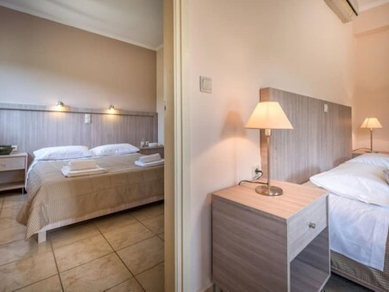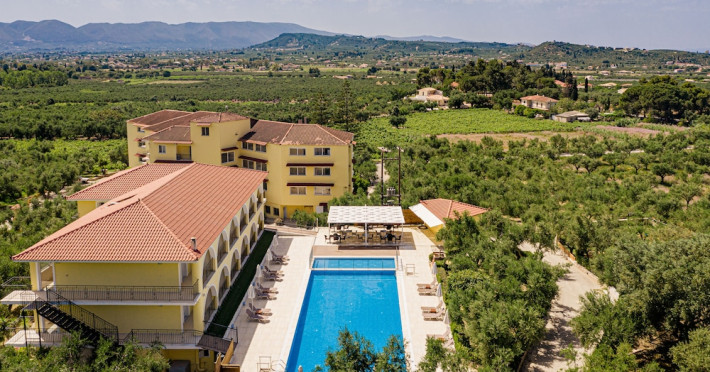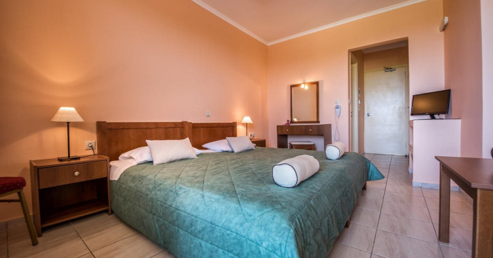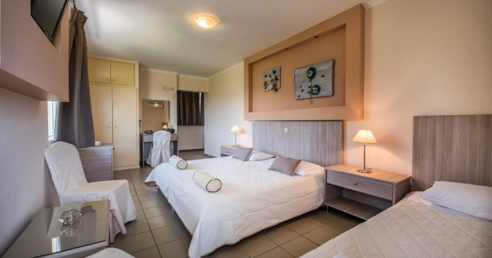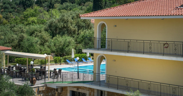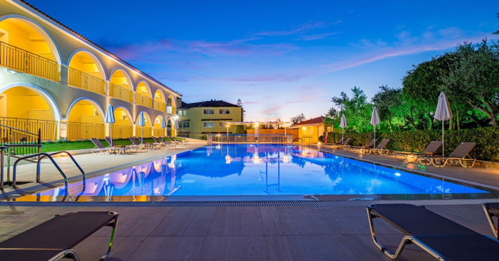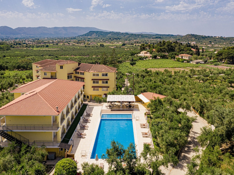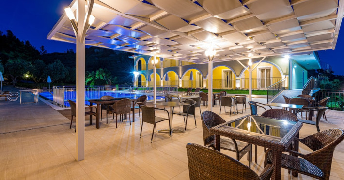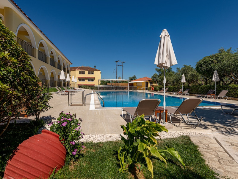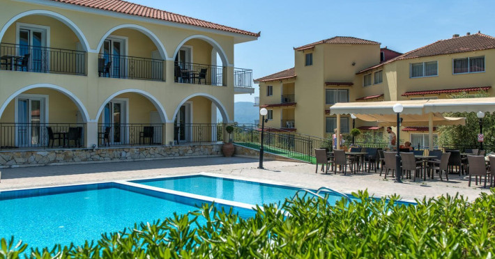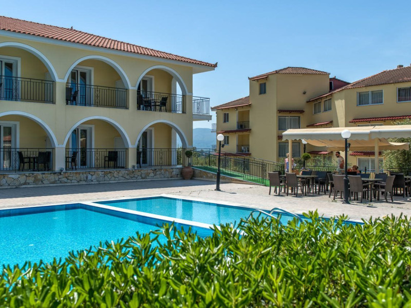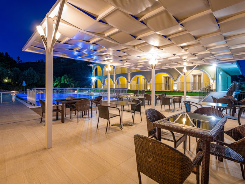 Facilities and services include a 24 hrs reception, restaurant, snack bar, outdoor pool, children's pool, elevator, wireless internet free of charge, meeting room and parking.The rooms are equipped with air conditioning, TV, telephone, wireless internet, safe box, hairdryer, fridge and balcony/terrace.Address: Bohali, 29100, Zakynthos, Greece.