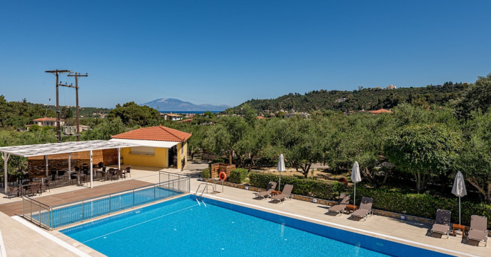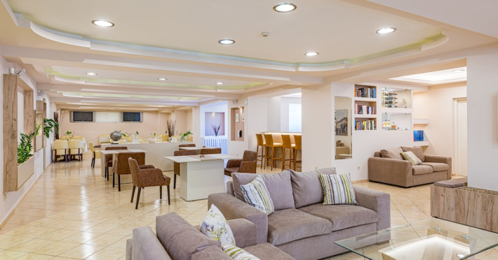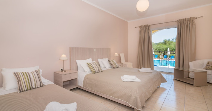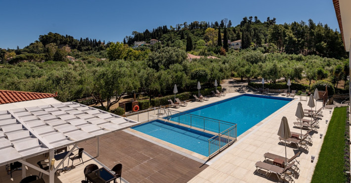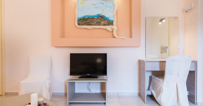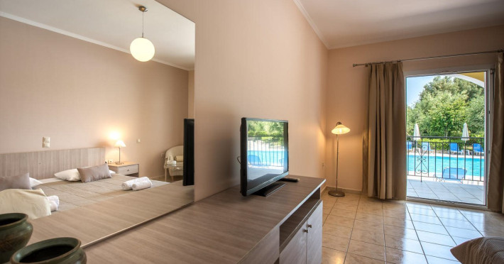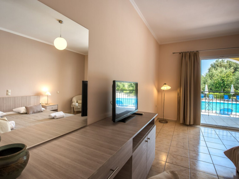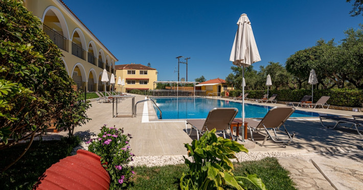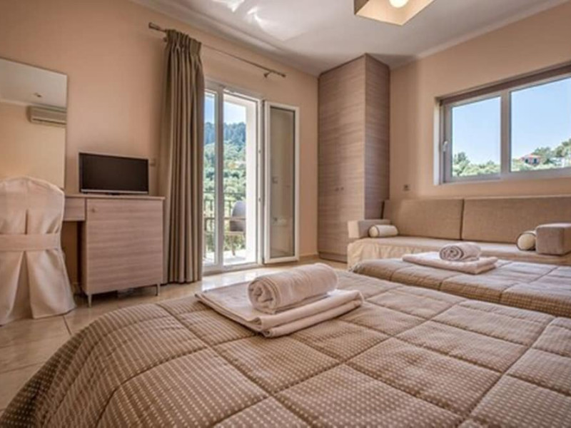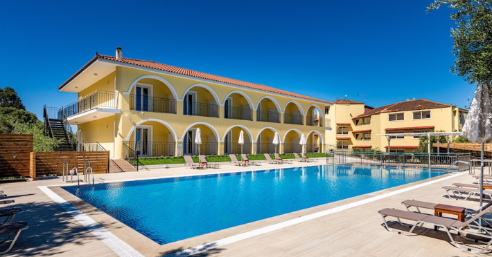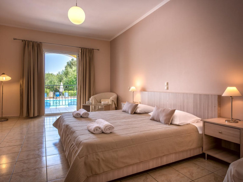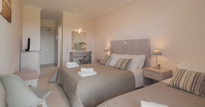 Facilities and services include a 24 hrs reception, restaurant, snack bar, outdoor pool, children's pool, elevator, wireless internet free of charge, meeting room and parking.The rooms are equipped with air conditioning, TV, telephone, wireless internet, safe box, hairdryer, fridge and balcony/terrace.Address: Bohali, 29100, Zakynthos, Greece.