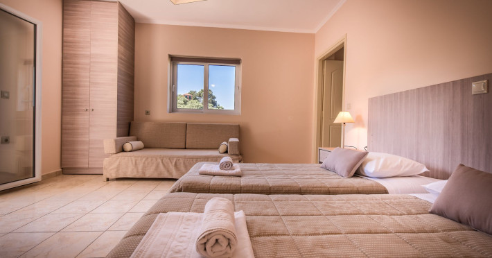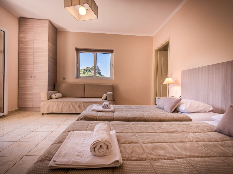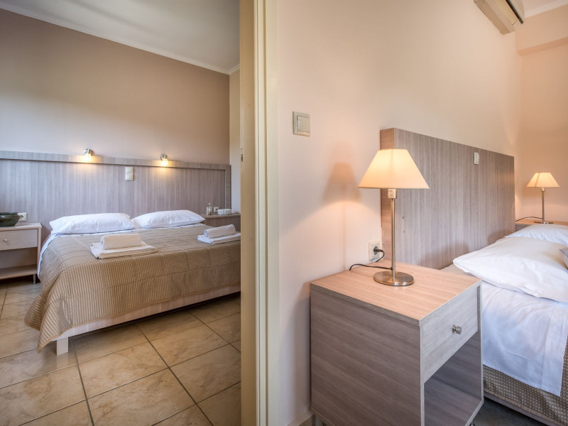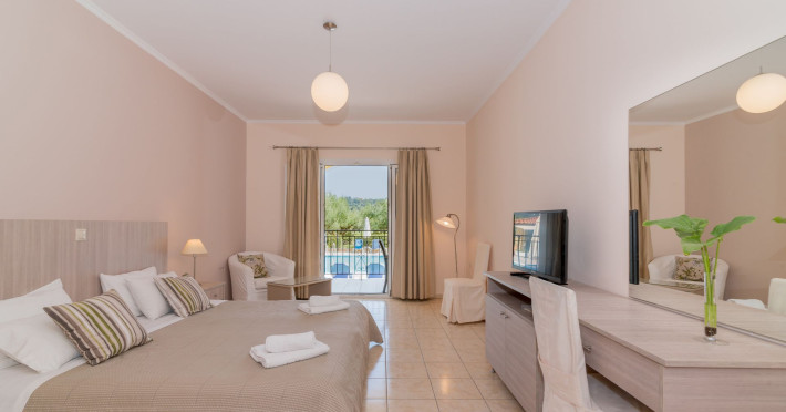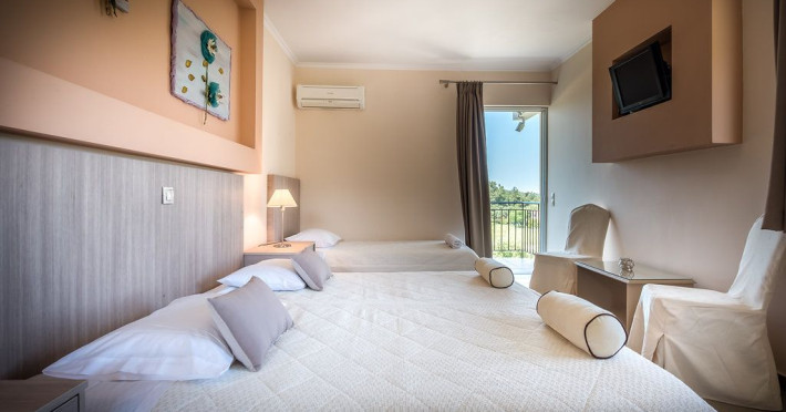 Varres Hotel is set within 20 hectares of manicured gardens complete with a pool that gracefully descend onto the hotel's wide expanse of our snack bar & playground area. Located in Bochali hill, Varres Hotel is conveniently situated only 2 kilometers from Zakynthos town, 4 kilometers from the International Airport Dionisios Solomos and next to Tsilivi resort area.