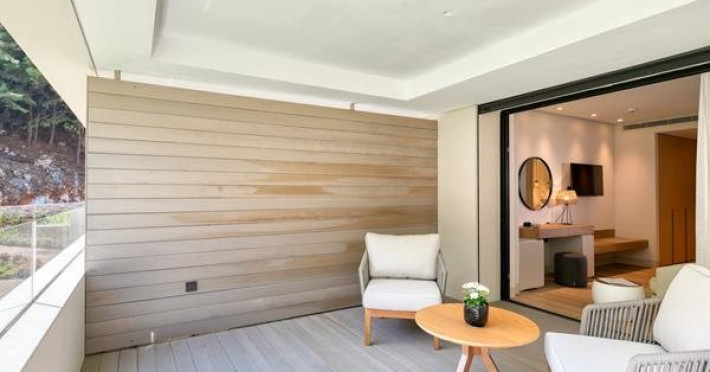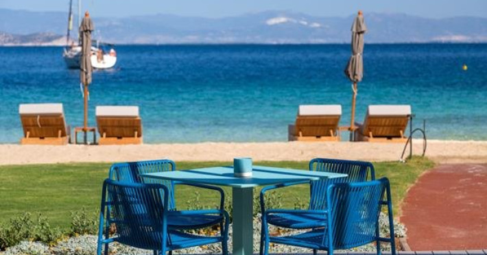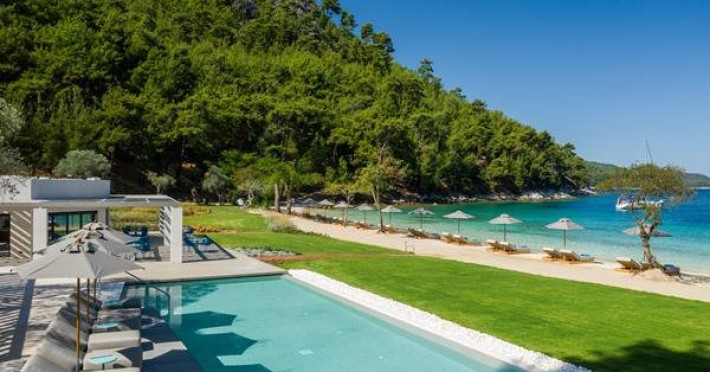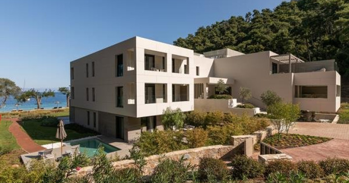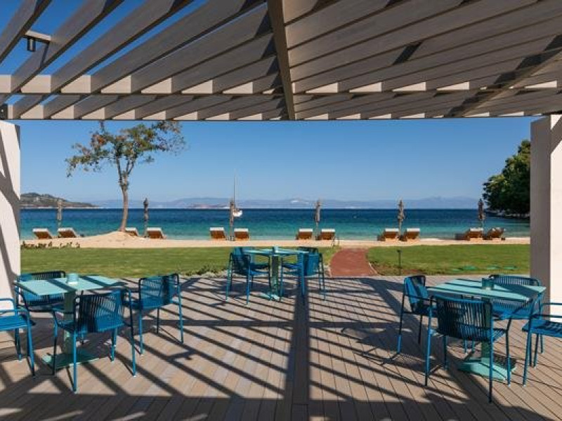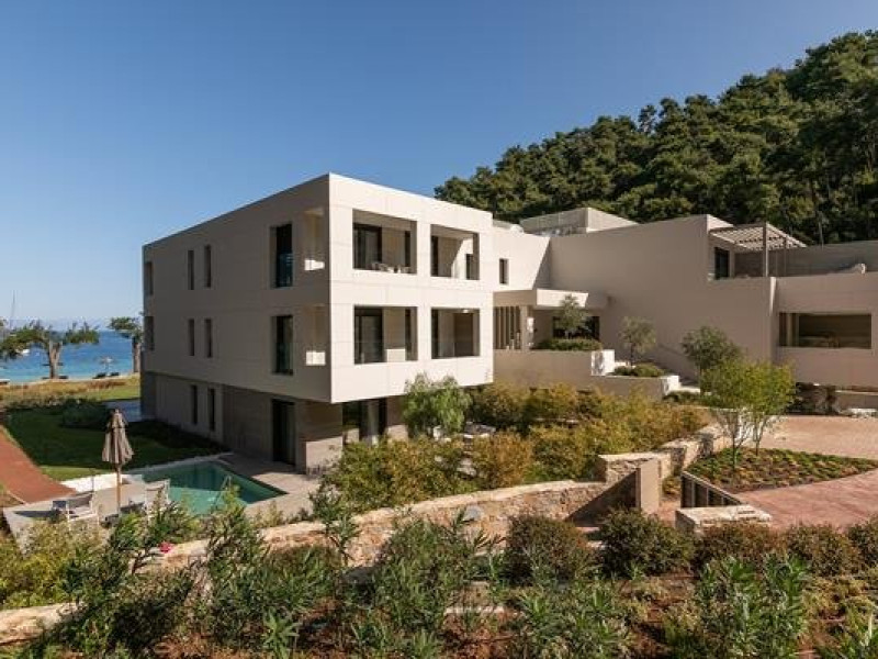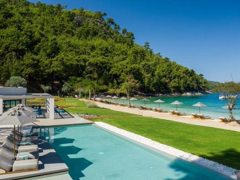 Localizare: Vathi Cove Luxury Resort & Spa din Thassos este situat intr-un loc de calm absolut si frumusete naturala incomparabila, pe plaja cu acelasi nume, renumita pentru nisipul sau alb, apele albastre ai padurea de pini virgina.