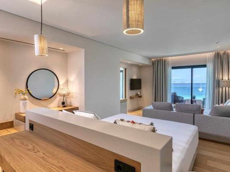 Descriere: Pe o plaja de nisip, alba, cu apa cristalina, turcoaz, suficient de aproape pentru a auzi sunetul valurilor, Vathi Cove Luxury Resort & Spa este o oaza rafinata, estetica. Confidentialitate absoluta si servicii de inalta calitate, impreuna o experienta de agrement premium intr-un cadru cosmopolit si romantic. Aici puteti gasi 30 de camere si apartamente de lux, un centru spa, un restaurant rafinat cu vedere uluitoare la marea albastra nesfarsita, un lounge bar cu apus de soare cu o ambianta unica si un restaurant cu bar pe tot parcursul zilei, unde va puteti bucura de serviciile noastre in timp ce stai intins pe sezlongurile confortabile din jurul piscinei incalzite si a plajei.