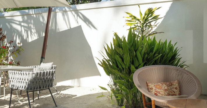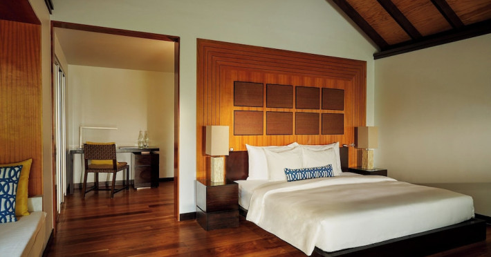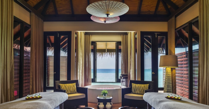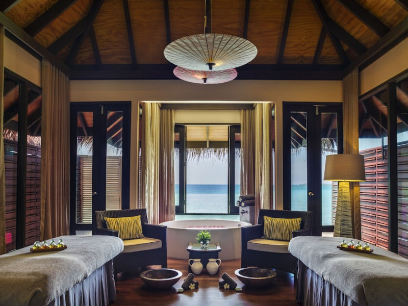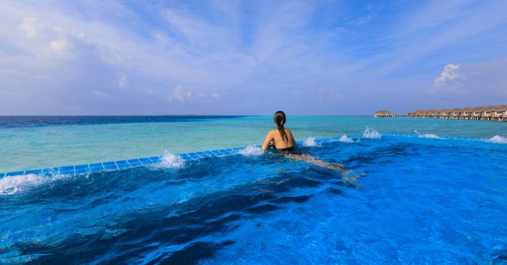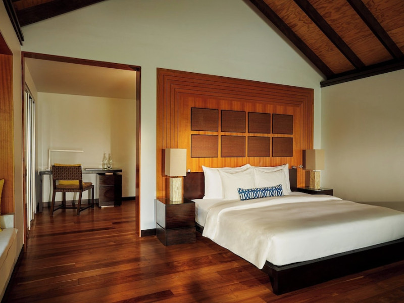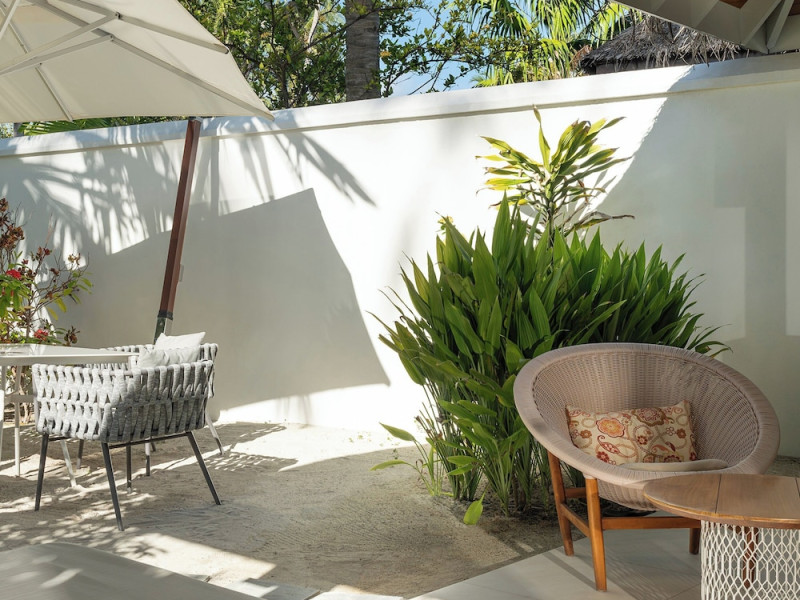 The boat arriving from the airport begins the approach to the resort from behind the island, making a broad sweep to enter its lagoon through a gap in the coral. From the sea, the island looks like a grove of coconut palms floating in the dreamy blue water of its private lagoon. The beach wraps the island in a soft cocoon of sand - a leisurely stroll for the devoted beachcomber and a blissful setting for romantic moments. The blue and gold of the horizon, the shades of green touching the lagoon, lend spectacular colour to this tropical hideaway. A resort that radiates elegance while offering a relaxed atmosphere - it is large enough to find quiet seclusion and small enough to share with loved ones.