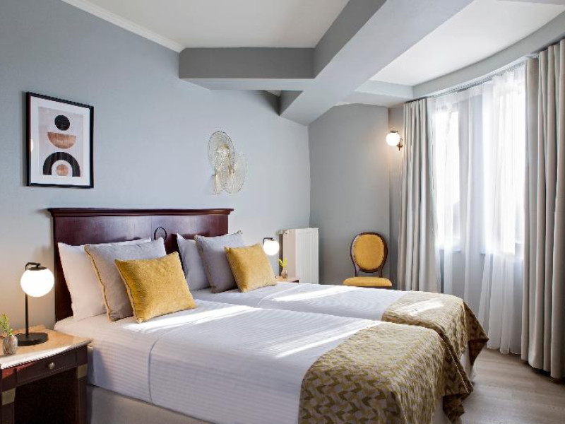The hotel has 49 rooms, including 2 junior suites, 5 suites, single rooms and 41 double rooms, which are located on 6 storeys and are reachable by a lift. Guests are warmly welcomed by English-speaking staff at the 24-hour reception desk in the lobby. Check-in/check-out service is available round the clock. Amenities include a baggage storage service and a safe. Wireless internet access allows guests to stay connected while on holiday. Wheelchair-accessible facilities are available. There are also a number of shops that make for great strolling and browsing. A garden provides extra space for rest and relaxation in the open air. Additional facilities include a TV room. Guests arriving by car can park their vehicles in the garage or in the car park. Further services and facilities include a 24-hour security service, a car hire service, medical assistance, a transfer service, room service, a laundry service, a coin-operated laundry and a hotel shuttle bus. The business centre is on hand for guests' business requirements and provides a fax machine.