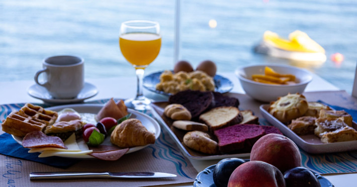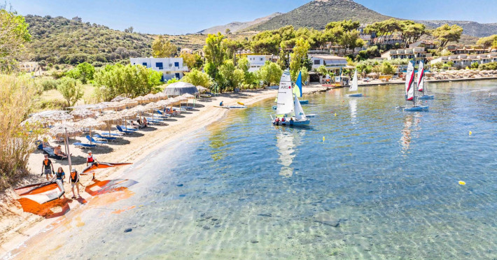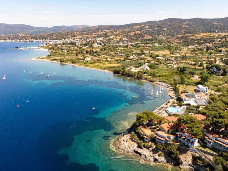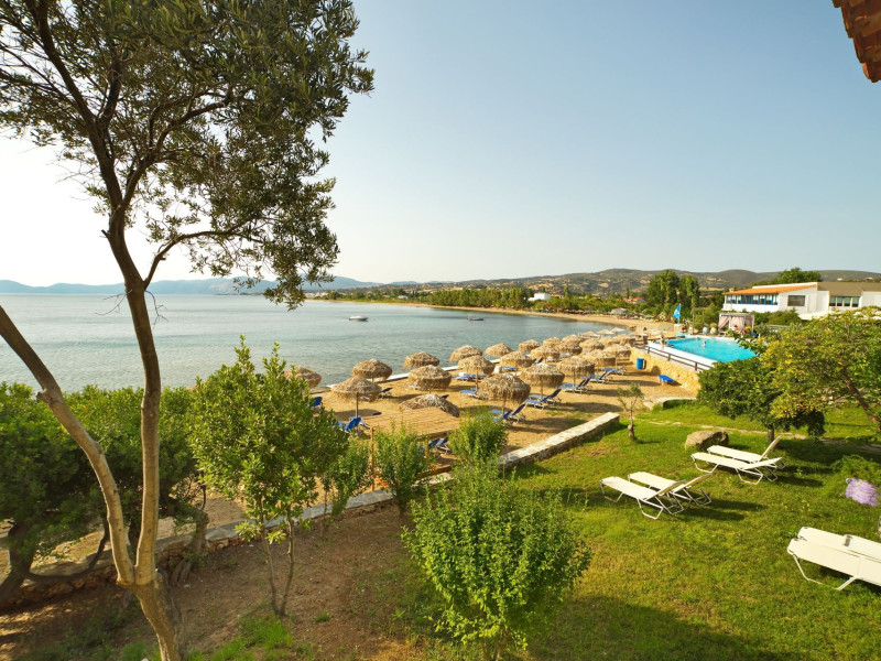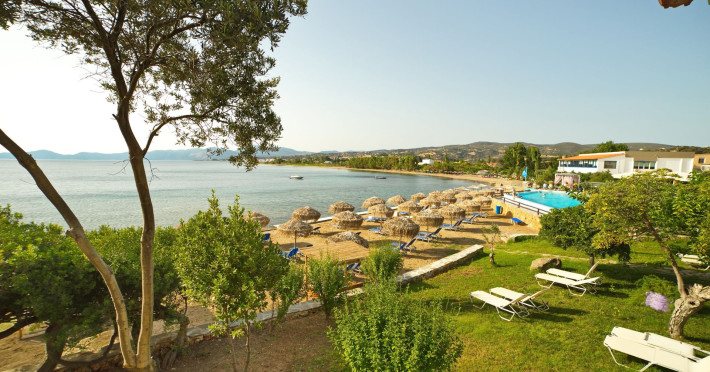 In Greek mythology, the goddess Aphrodite marveled with her fairy-tale beauty. Venus Beach Hotel promises to enchant you even more.Overlooking the inexhaustible blue of the South Evian Gulf, each refined visitor lives our own “urban” myth. Inside a wonderful natural, turquoise canvas, you will find our complex consisting of 115 Standard and Superior bungalows amphitheatrically built in a privileged position as a small village in an area of 25 acres in the green, overlooking the sea or the pool or our wonderful garden filled with olive trees,It is a space of hospitality close to the port of Nea Stira, built with the taste and the love of the owners, that awaits you to spend an unforgettable holiday with the glory of yesterday,and the nobility and the comforts of today. Be inspired by the combination of sky, sea, urban lifestyle and decoration that create the most enchanting canvas, especially during the sunset! Our rich and delightful buffet during breakfast and dinner on our first floor restaurant will bring you closer to the famous Greek gastronomy with our dishes made by ingredients selected from our local farmers. Here you will feel guests, not customers.