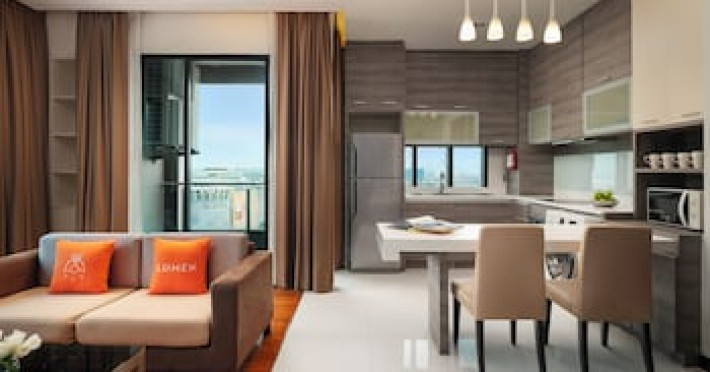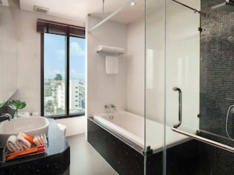 Rooms Make yourself at home in one of the 64 individually decorated guestrooms, featuring kitchens with refrigerators and stovetops. Your Select Comfort bed comes with Frette Italian sheets. Rooms have private balconies. Wired and wireless internet access is complimentary, while 40-inch flat-screen televisions with digital programming provide entertainment. Bathrooms with separate bathtubs and showers feature jetted bathtubs and complimentary toiletries.