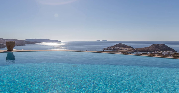 ALEGRIA Mykonos is the largest private venue on the island and an award-winning luxury villa estate known for its exceptional hospitality, spacious design, and breathtaking Aegean Sea views.
