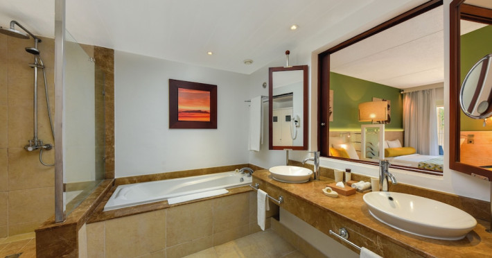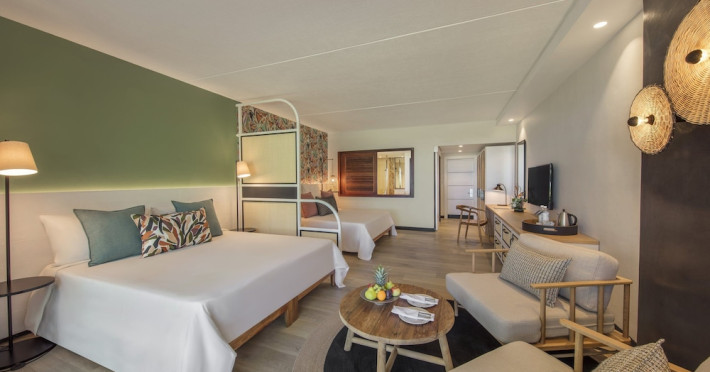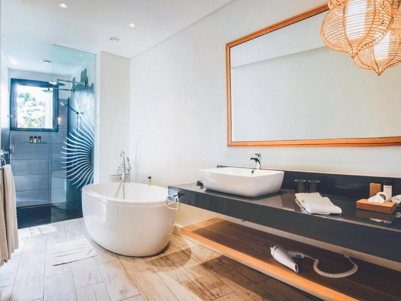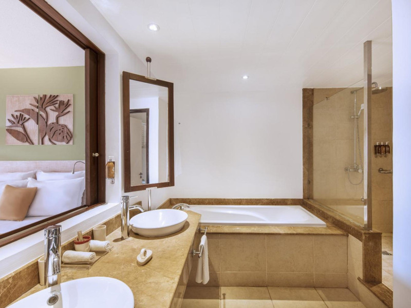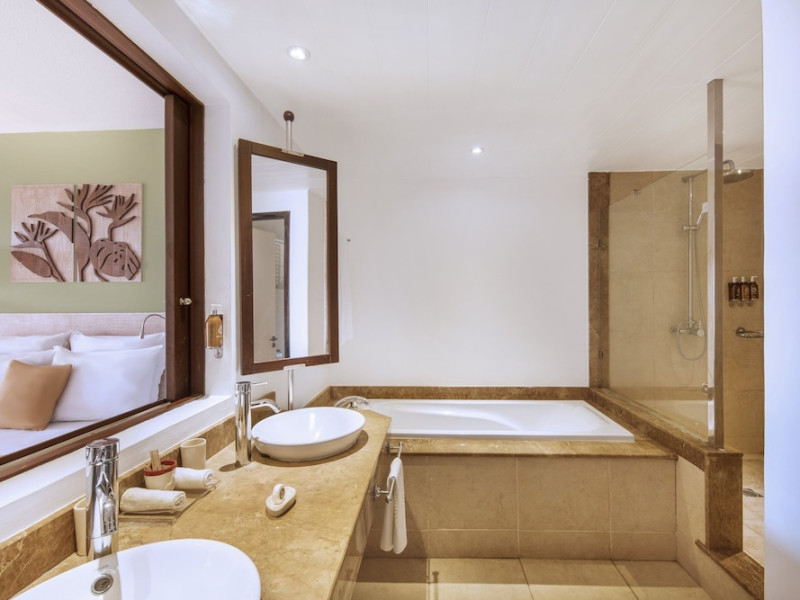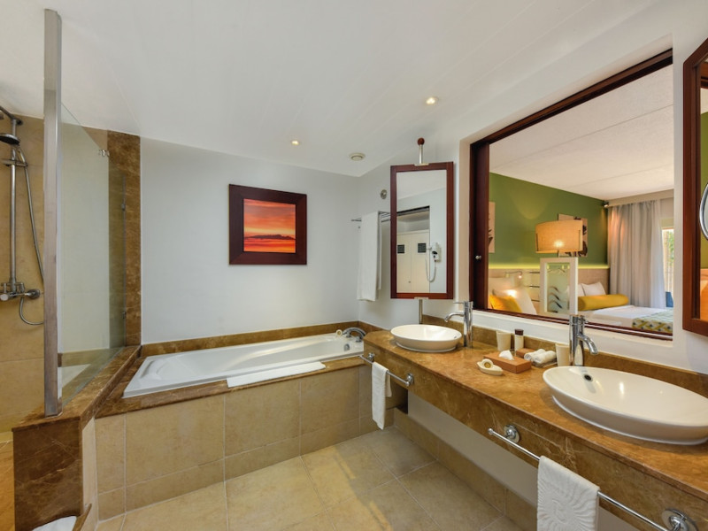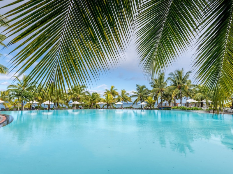 Victoria Beachcomber Resort & Spa, a 4-star beachfront resort on Mauritius' northwest coast, offers 295 air-conditioned rooms with minibars, LED TVs, satellite channels, and private furnished balconies or patios. Bathrooms feature separate bathtubs and showers with rainfall showerheads and complimentary toiletries. The resort boasts three restaurants, including Le Superbe serving international cuisine, room service (limited hours), a bar/lounge, and a poolside bar. A complimentary buffet breakfast is served daily (7:30 AM - 10:00 AM). All-inclusive rates are available, including meals and beverages at most onsite dining establishments (some exclusions apply). Recreational amenities include a full-service spa offering massages, an outdoor pool, outdoor tennis courts, and a private beach. Additional amenities include complimentary Wi-Fi, concierge services, babysitting (surcharge), a computer station, complimentary newspapers in the lobby, dry cleaning/laundry services, a fitness center, and free self-parking. Airport shuttle service is available for a surcharge. The resort also features an adults-only section with 40 rooms, an 800m² pool, a bar, and an à la carte restaurant. A kids' club (ages 3-11) and baby care room are available, along with a teens' club. Nearby attractions include Balaclava Beach, Turtle Bay Marine Park, and Pointe aux Piments Beach (distances vary). The resort is approximately 14 km from Grand Baie and 60 km from Sir Seewoosagur Ramgoolam International Airport. The Victoria Beachcomber Resort and Spa is a Tourist hotel. Located in Pointe Aux Piments area. The nightlife/restaurants are located in the hotel.