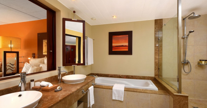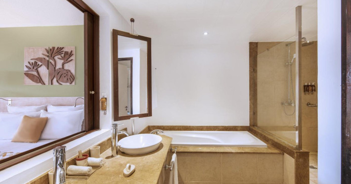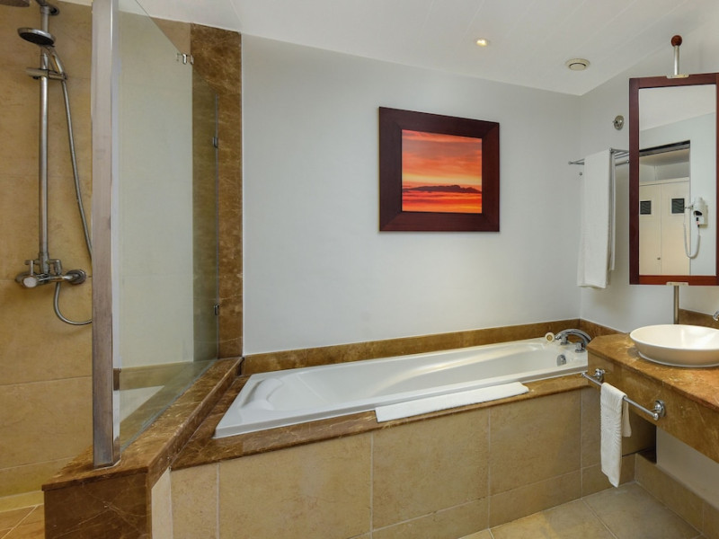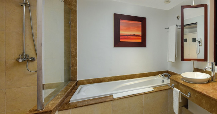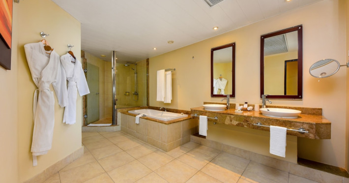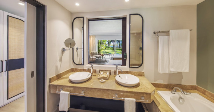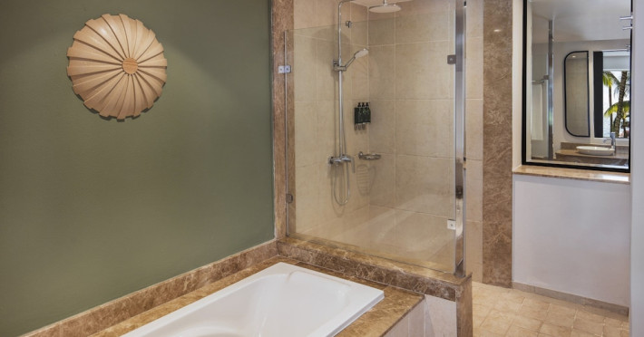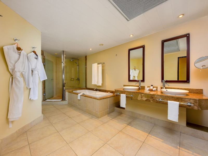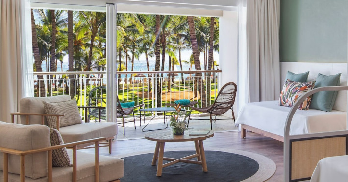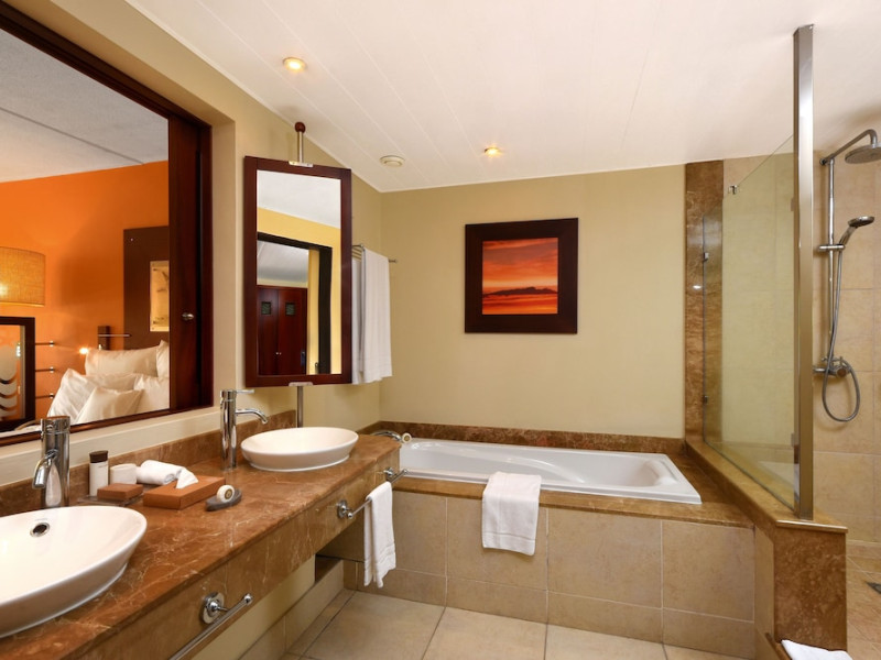 Victoria Beachcomber Resort & Spa, a 4-star beachfront resort on Mauritius' northwest coast, offers 295 air-conditioned rooms with minibars, LED TVs, satellite channels, and private furnished balconies or patios. Bathrooms feature separate bathtubs and showers with rainfall showerheads and complimentary toiletries. The resort boasts three restaurants, including Le Superbe serving international cuisine, room service (limited hours), a bar/lounge, and a poolside bar. A complimentary buffet breakfast is served daily (7:30 AM - 10:00 AM). All-inclusive rates are available, including meals and beverages at most onsite dining establishments (some exclusions apply). Recreational amenities include a full-service spa offering massages, an outdoor pool, outdoor tennis courts, and a private beach. Additional amenities include complimentary Wi-Fi, concierge services, babysitting (surcharge), a computer station, complimentary newspapers in the lobby, dry cleaning/laundry services, a fitness center, and free self-parking. Airport shuttle service is available for a surcharge. The resort also features an adults-only section with 40 rooms, an 800m² pool, a bar, and an à la carte restaurant. A kids' club (ages 3-11) and baby care room are available, along with a teens' club. Nearby attractions include Balaclava Beach, Turtle Bay Marine Park, and Pointe aux Piments Beach (distances vary). The resort is approximately 14 km from Grand Baie and 60 km from Sir Seewoosagur Ramgoolam International Airport. The Victoria Beachcomber Resort and Spa is a Tourist hotel. Located in Pointe Aux Piments area. The nightlife/restaurants are located in the hotel.
